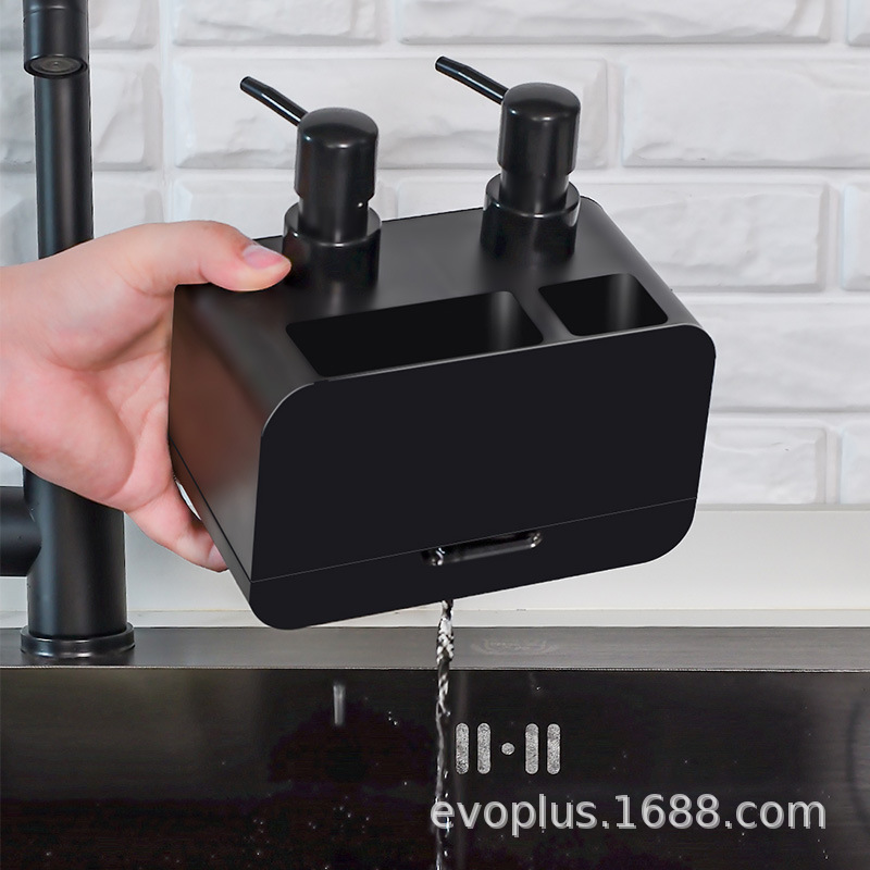 Cross-border new kitchen cleaning products double-headed pressing soap liquid box manual pressing soap liquid storage drain function