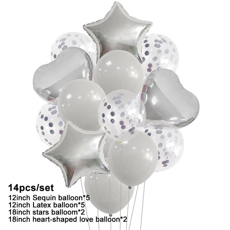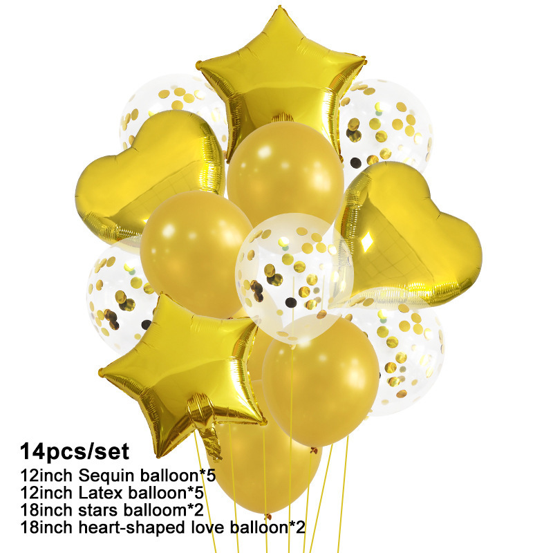 rose gold love five-pointed star rubber balloons 14-piece set birthday party sequined balloon layout decoration
