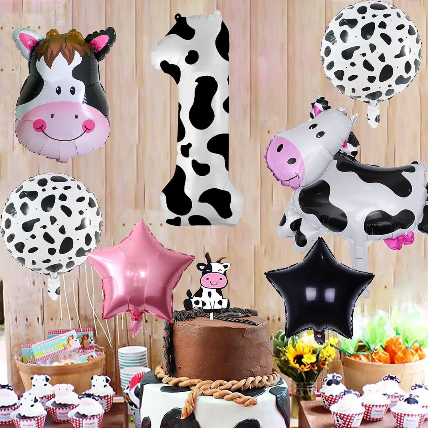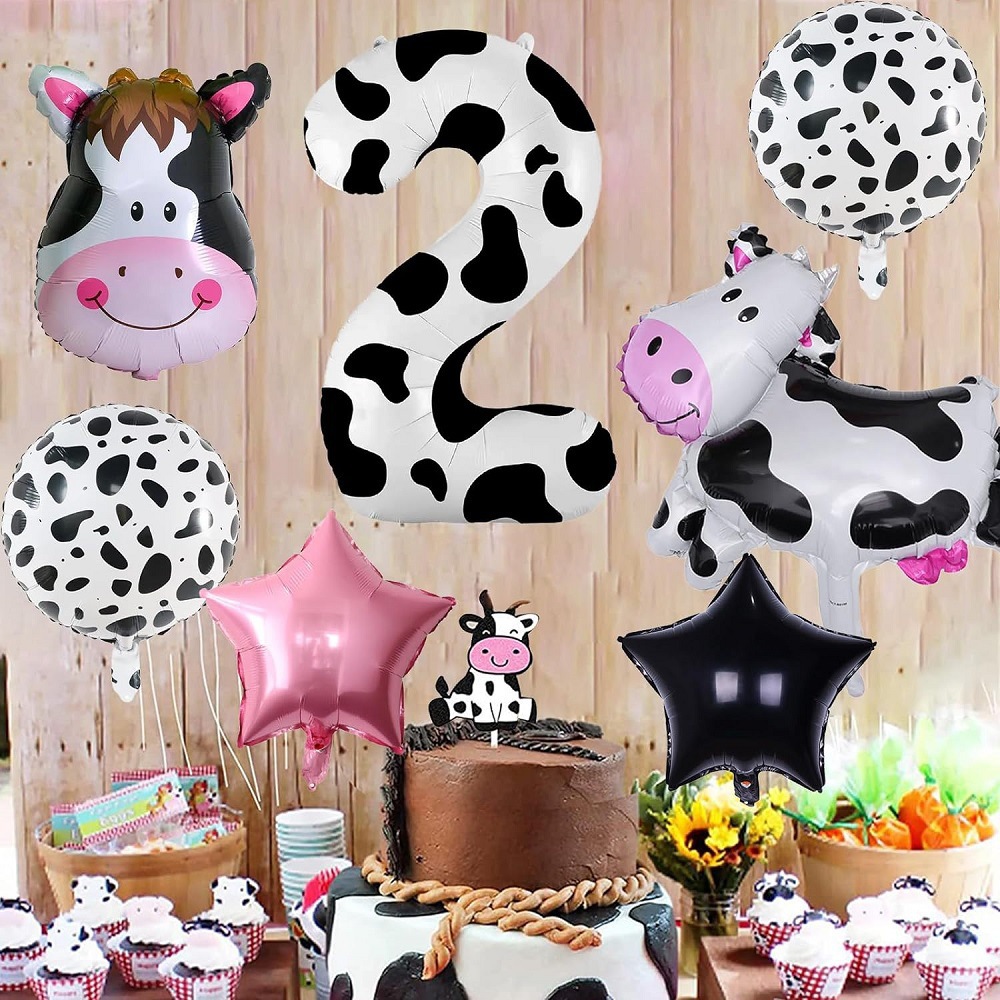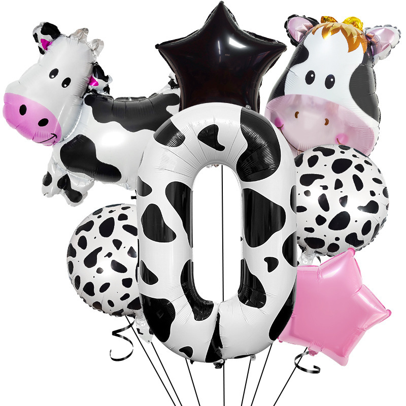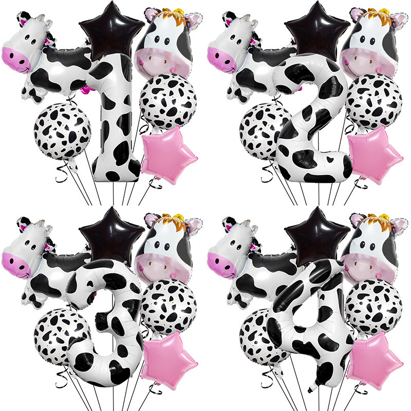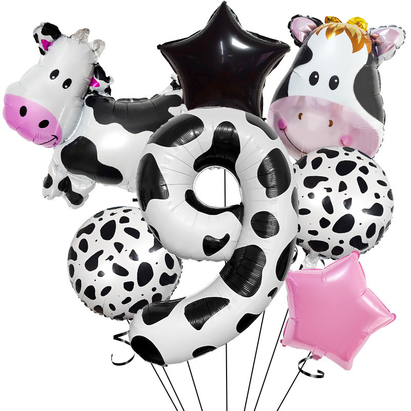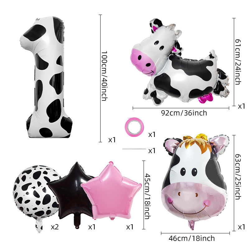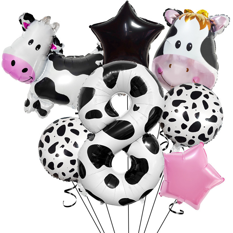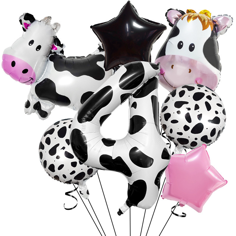 cute ranch farm cow theme balloon decoration 40-inch digital balloon set scene layout children's birthday