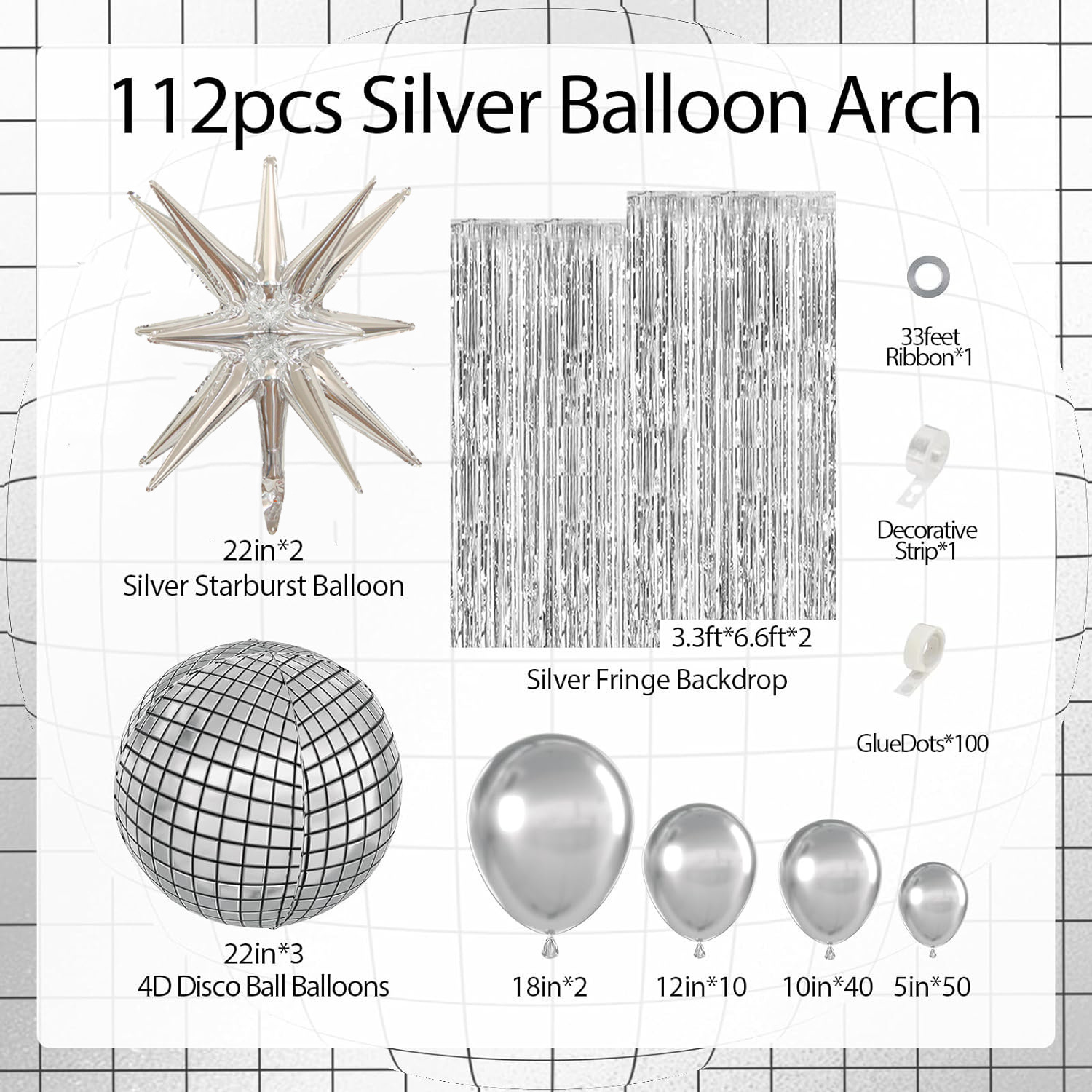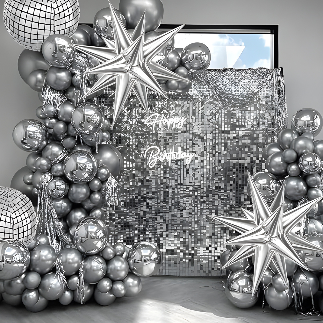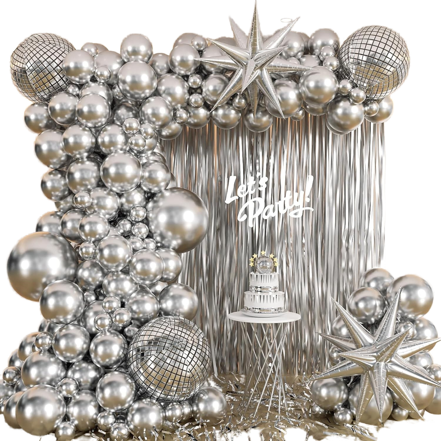 cross-border amazon metal silver arch disco balloon 2 beige silver tassel explosion star graduation party student