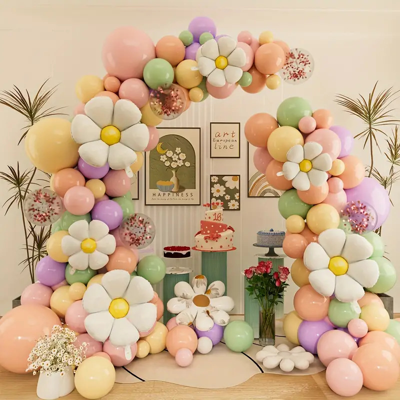 colorful daisy balloon chain garland arch set wedding anniversary party background wall layout children's birthday