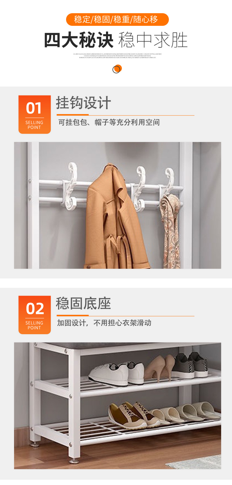 white frame black leather 80cm (shoes rack + coat rack)