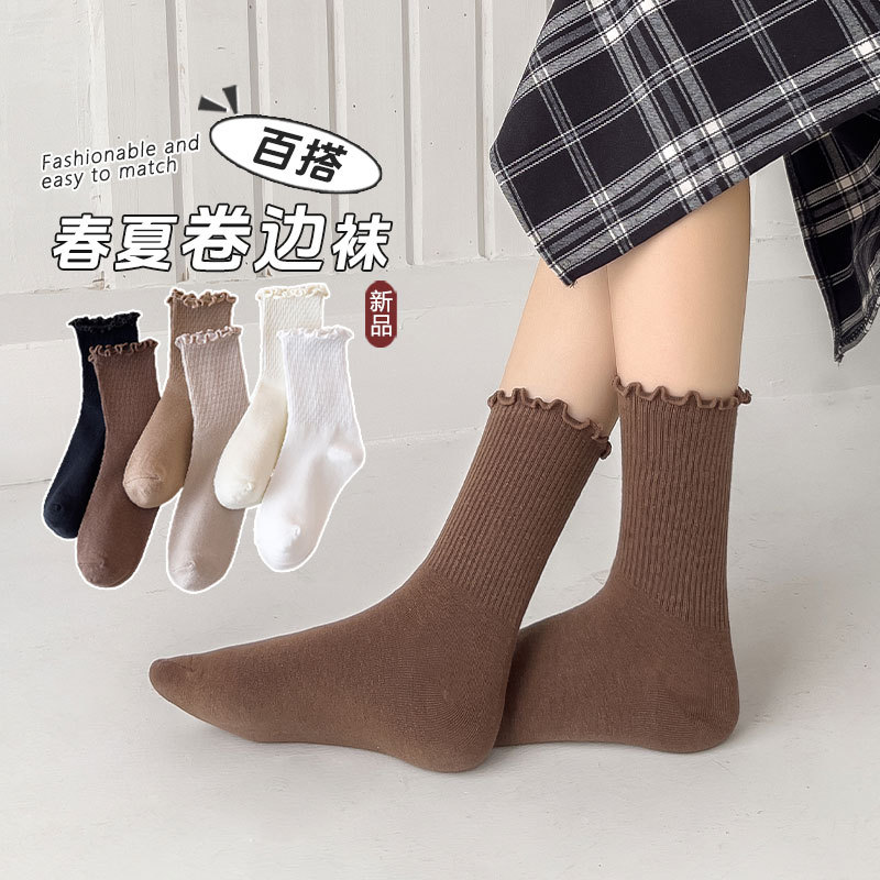 women's socks warm coffee color wooden ear female middle tube socks four seasons ins style women's sweat absorption long socks loose confinement socks cotton