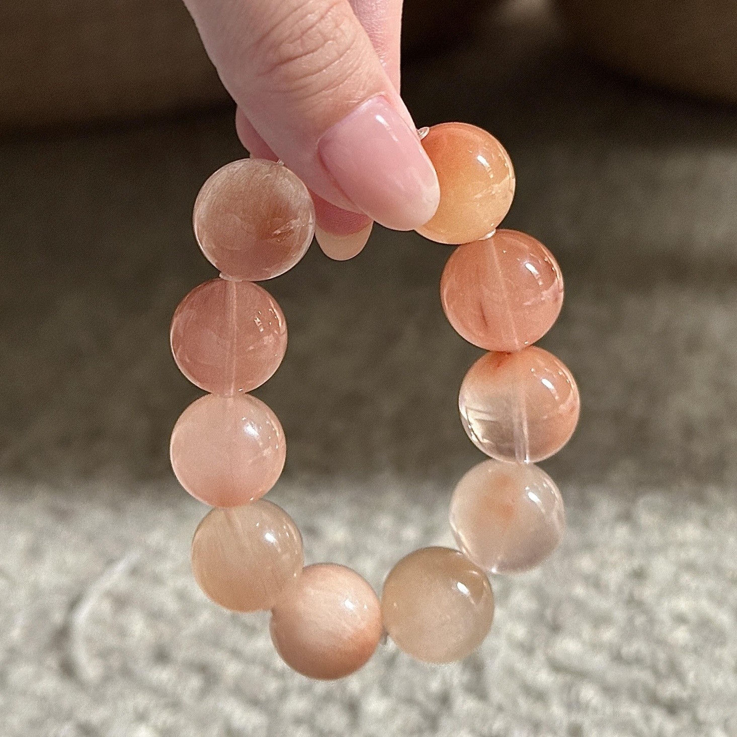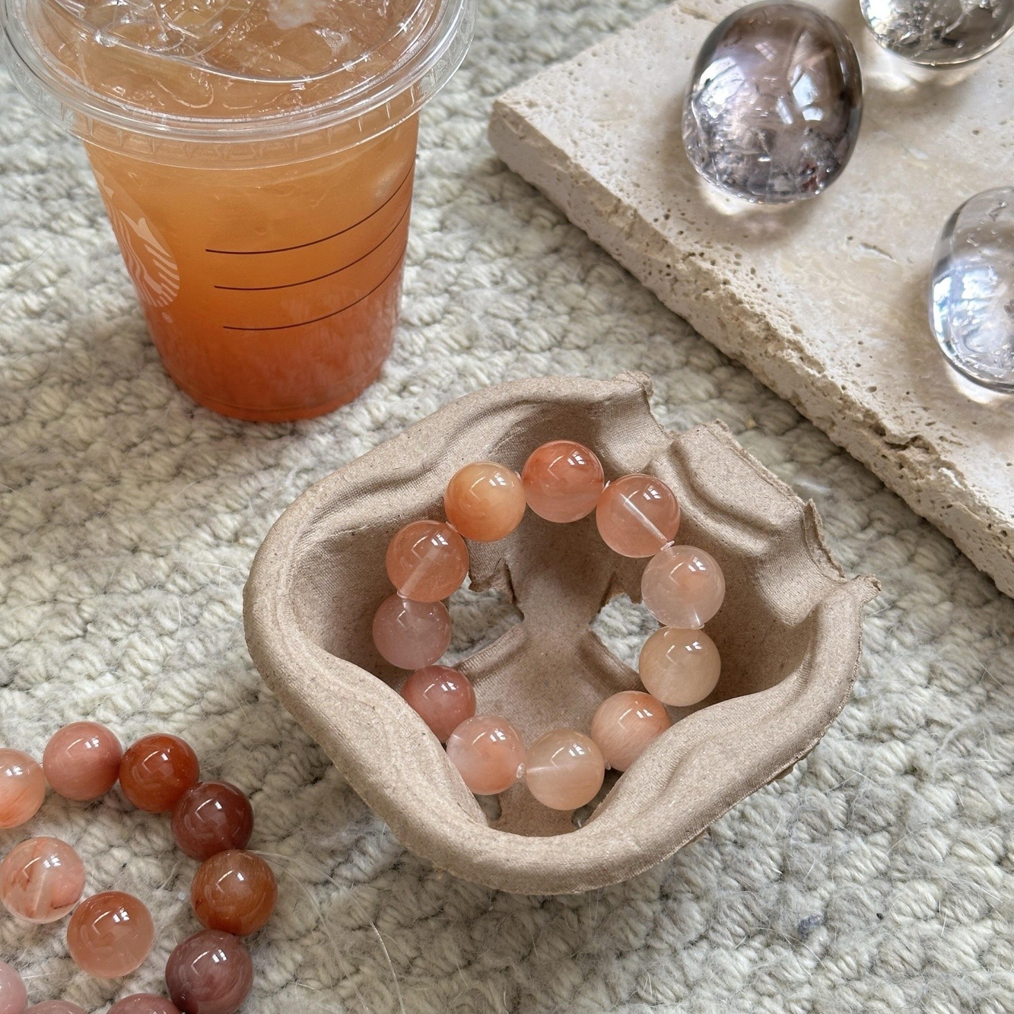 orange pink rabbit fur crystal bracelet