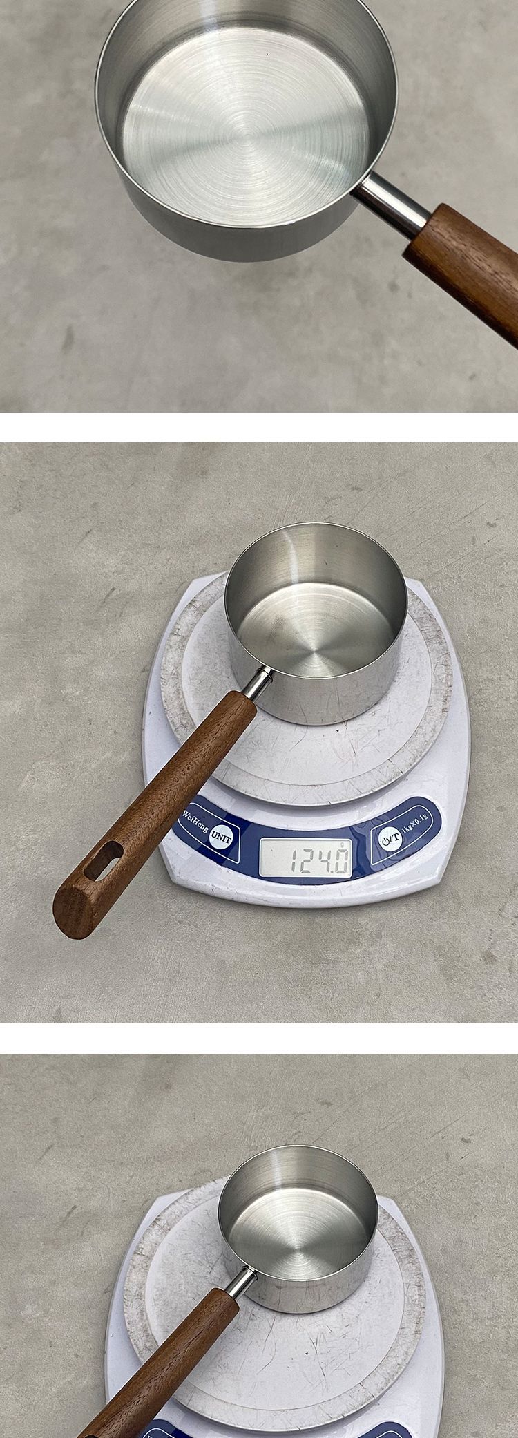 w-180 oblique handle walnut flat bottom measuring cup-golden 125ml