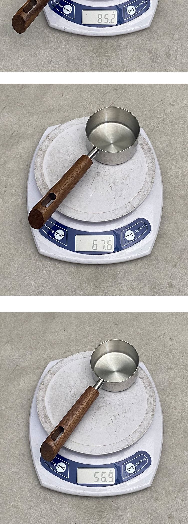w-180 oblique handle walnut flat bottom measuring cup-natural color 80ml