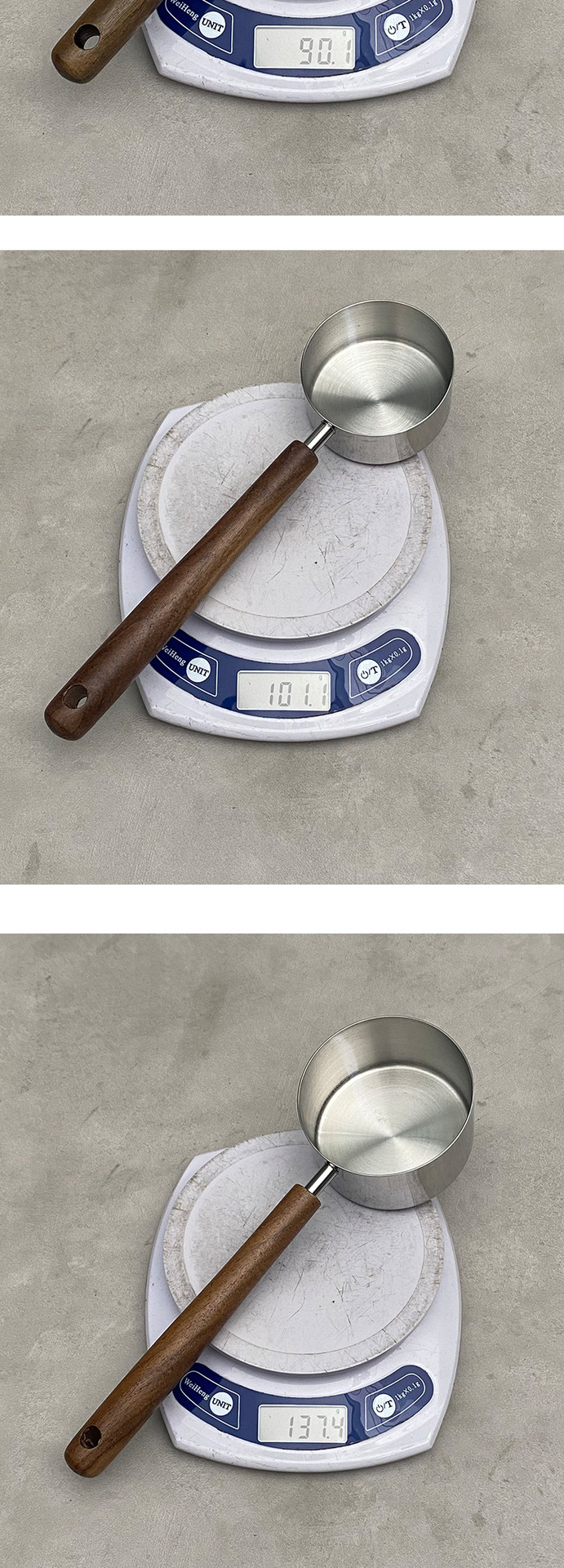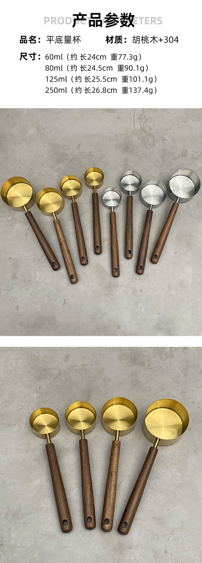 w-179 long handle walnut flat bottom measuring cup-gold 80ml