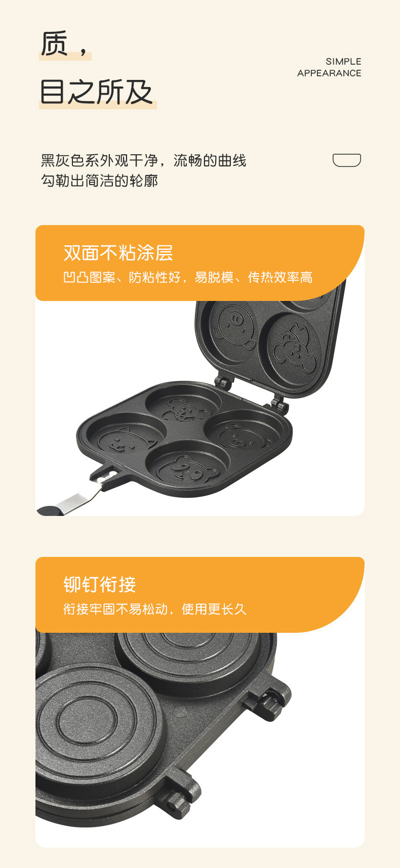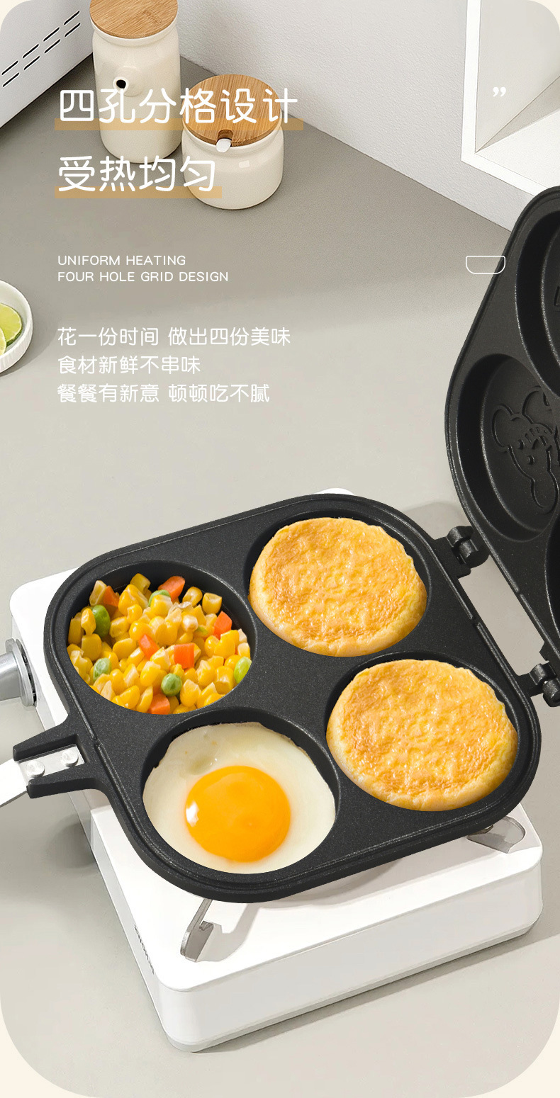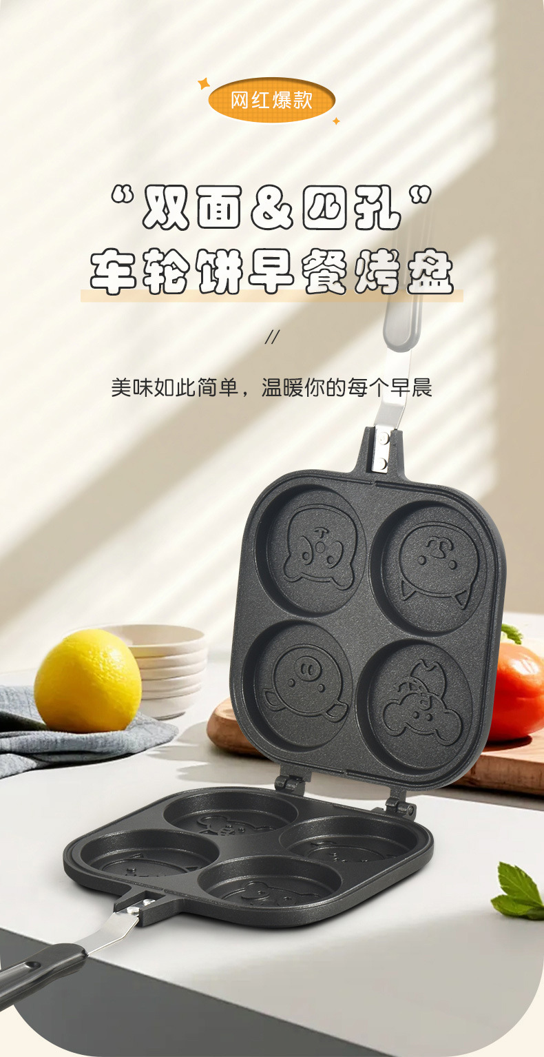 factory square wheel shaped cake baking pan double-sided four-hole animal omelette non-stick pan household multi-functional breakfast frying pan
