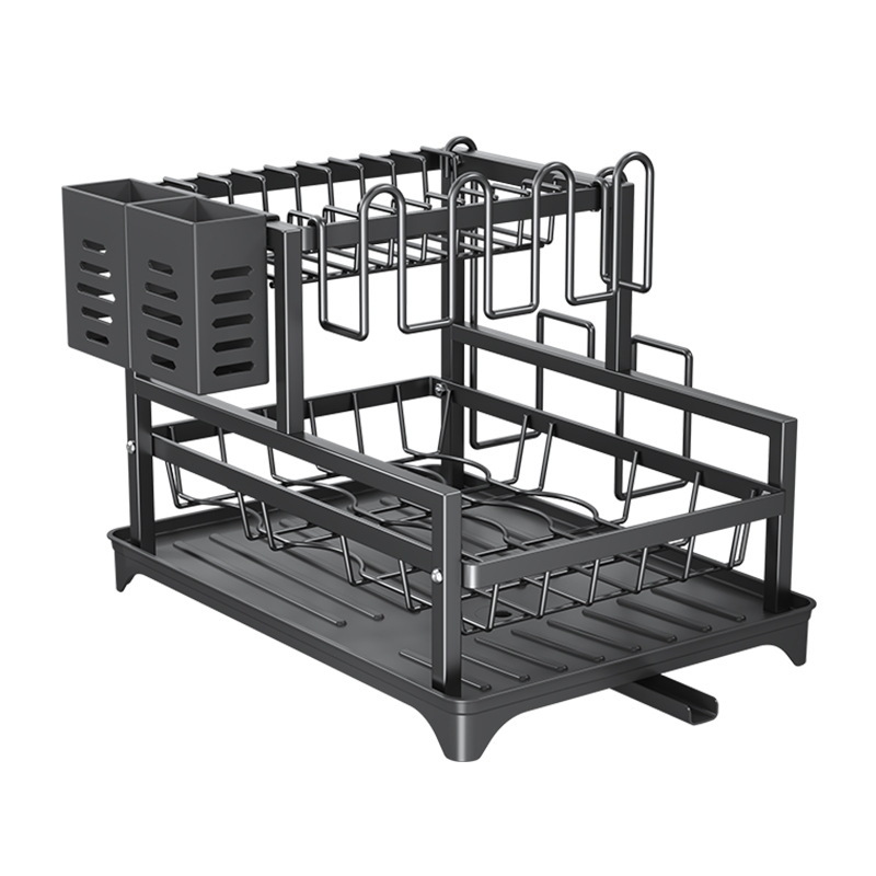 black-double-layer square tube plate rack