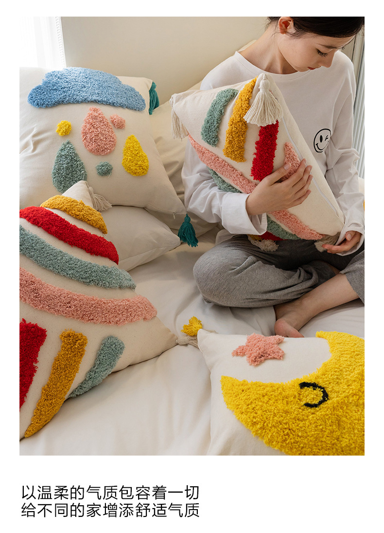 new children's cartoon cushion bedside cushion tufted embroidered pillow ins high-grade sofa backrest bed pillow