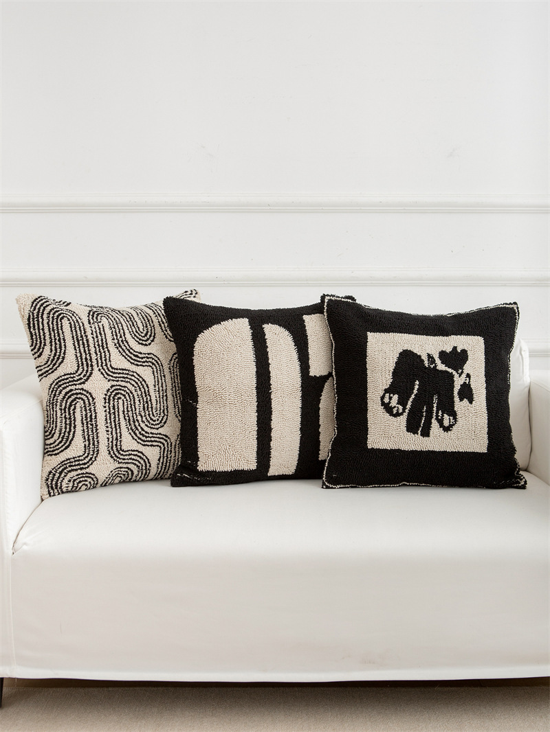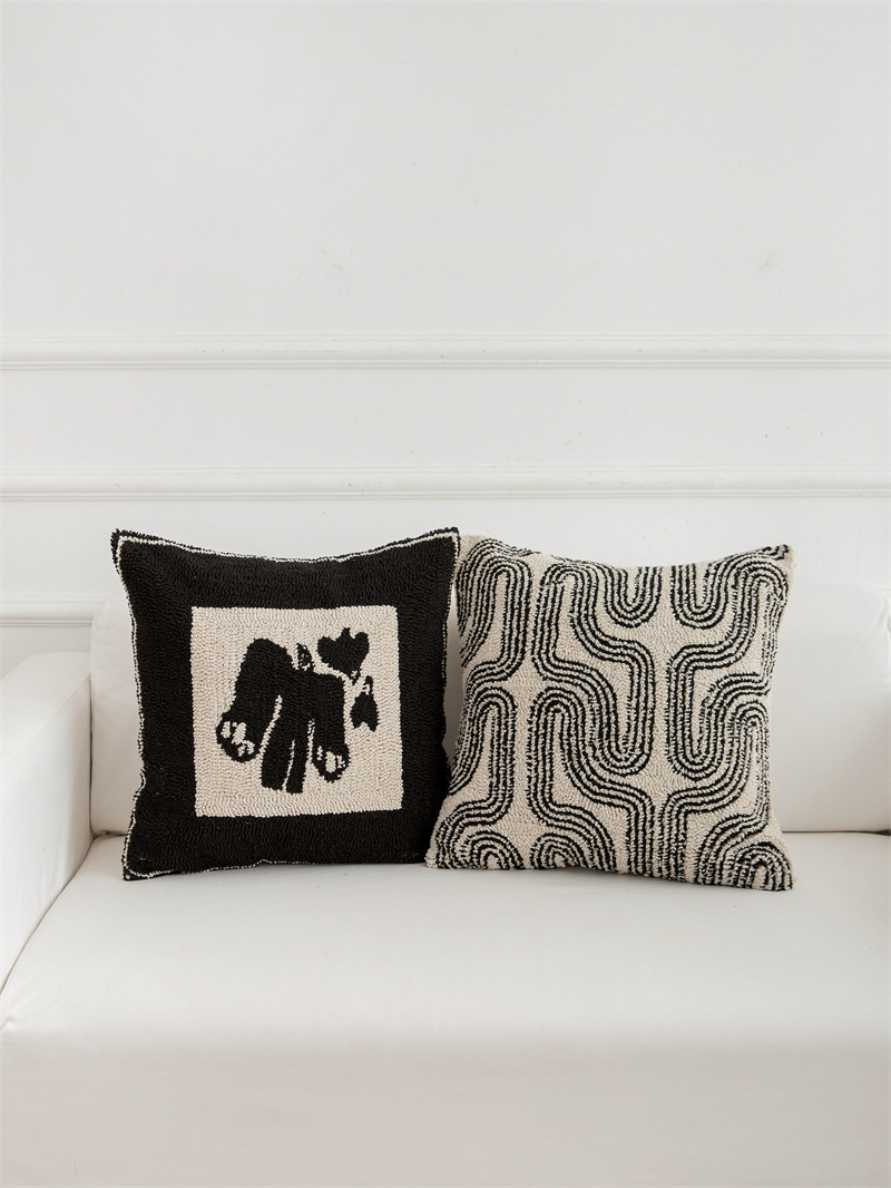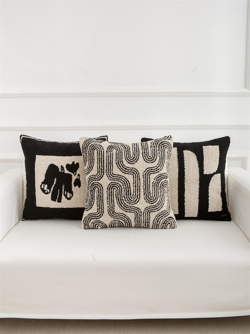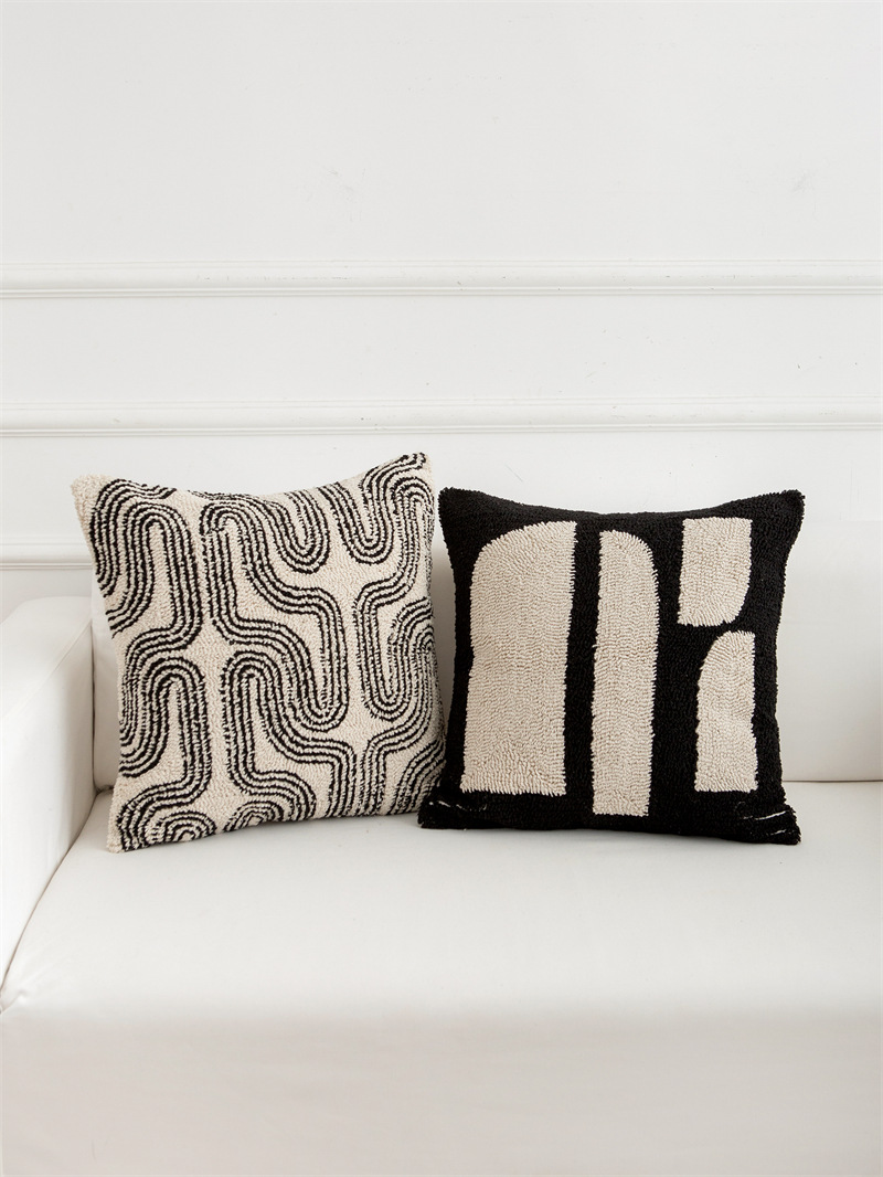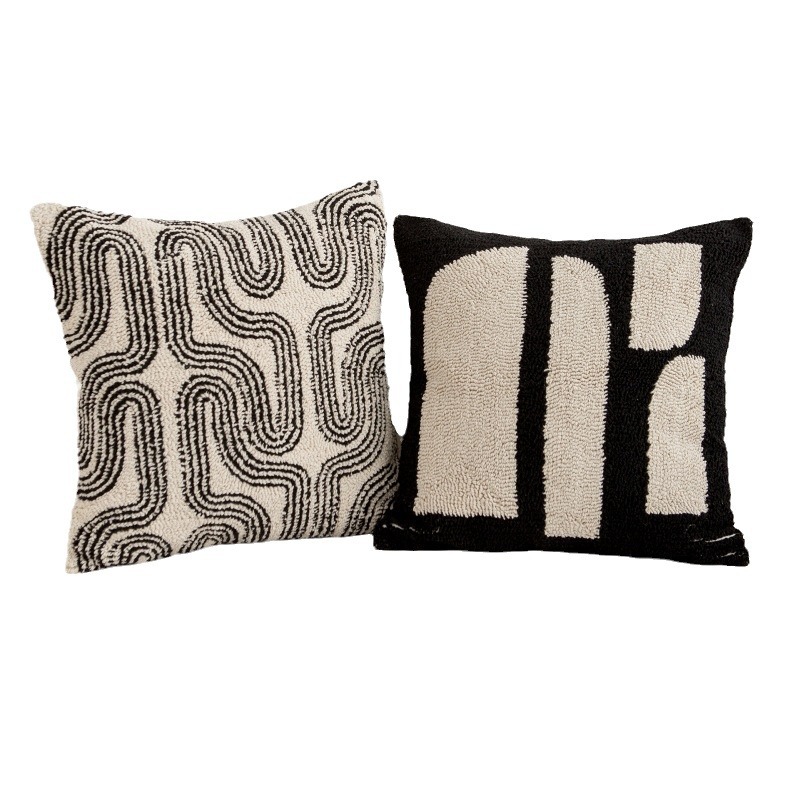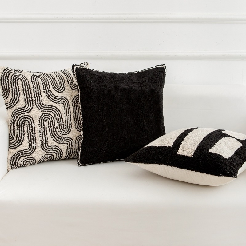 couch pillow ins style canvas tufted embroidered bedside throw pillowcase black white pillow cover cushion lumbar support pillow 50*50