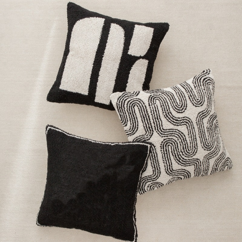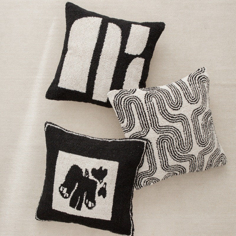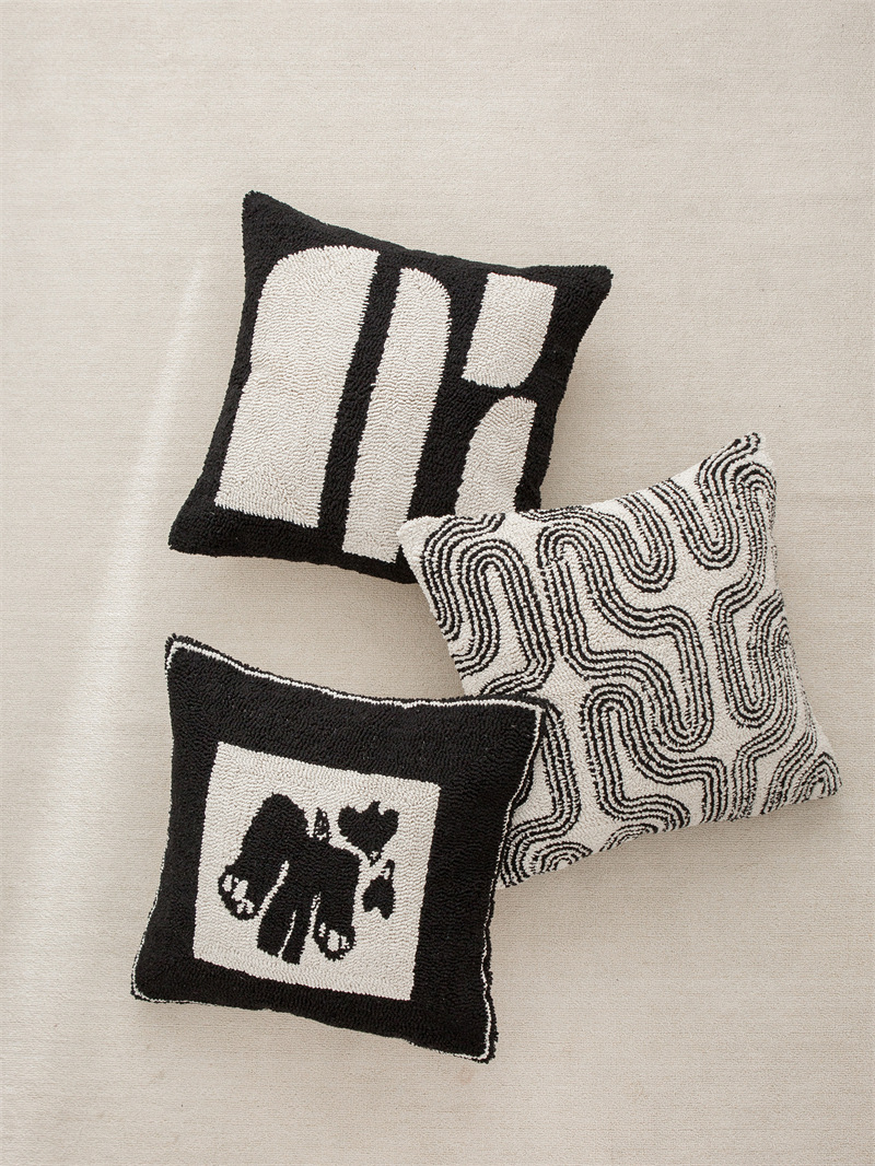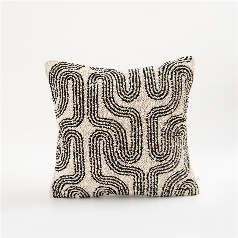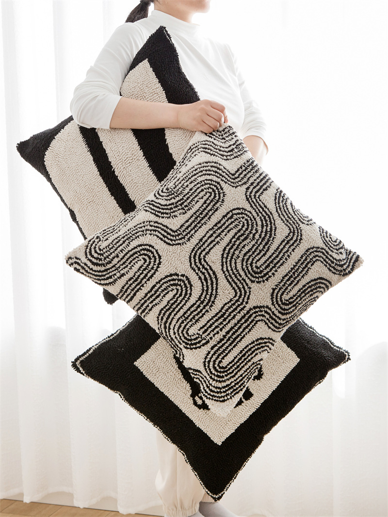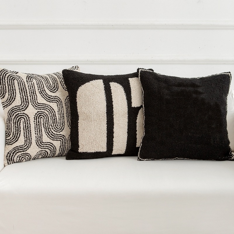 couch pillow ins style canvas tufted embroidered bedside throw pillowcase black white pillow cover cushion lumbar support pillow 50*50