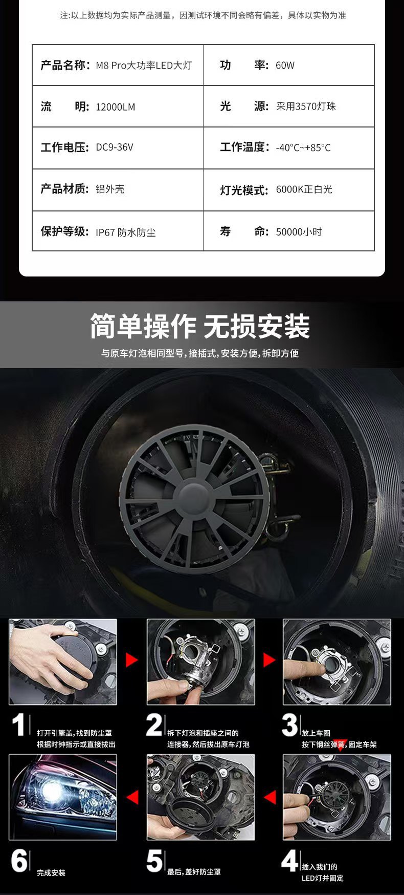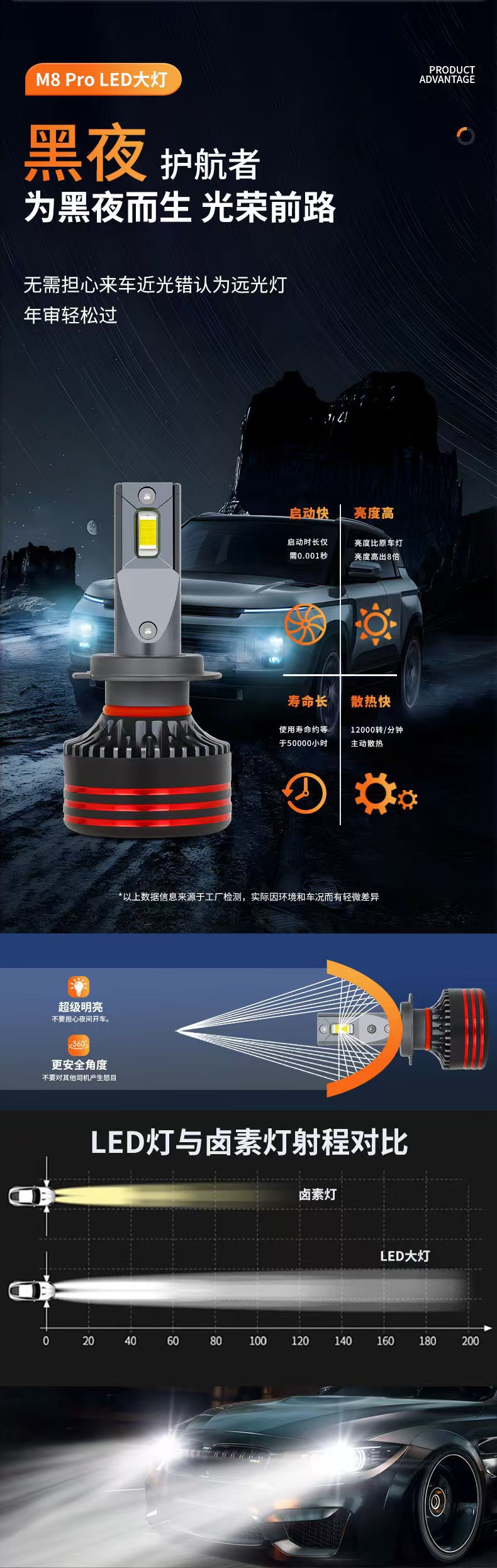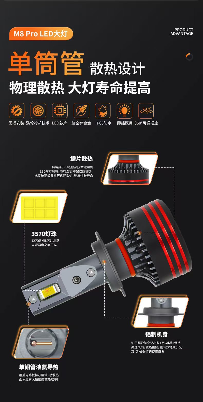 cross-border supply m8pro high-power h7 headlight universal car modification super bright bulb h4 highlight spotlight