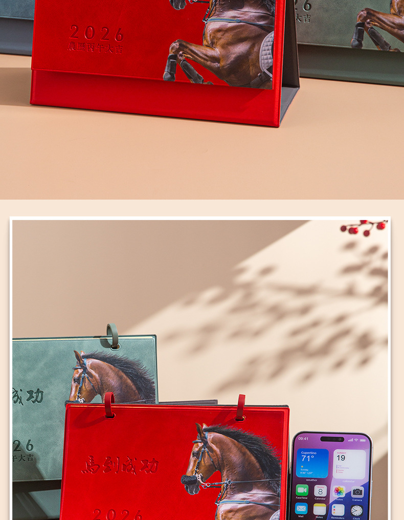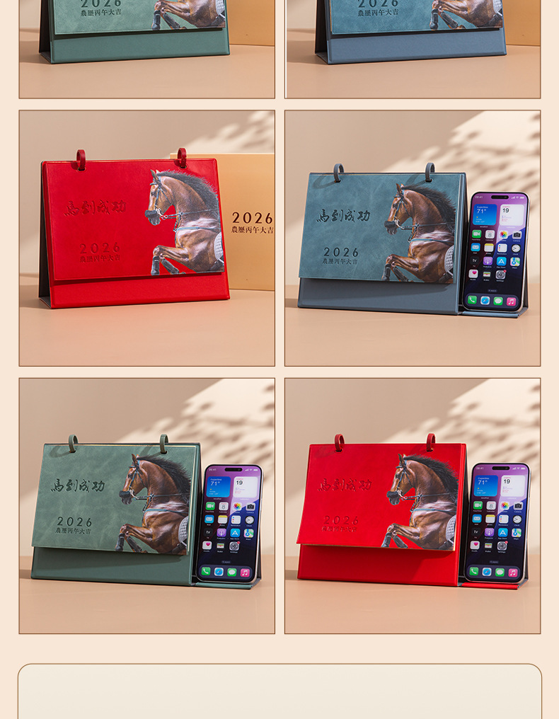 red desk calendar-win instant success-with mobile phone holder