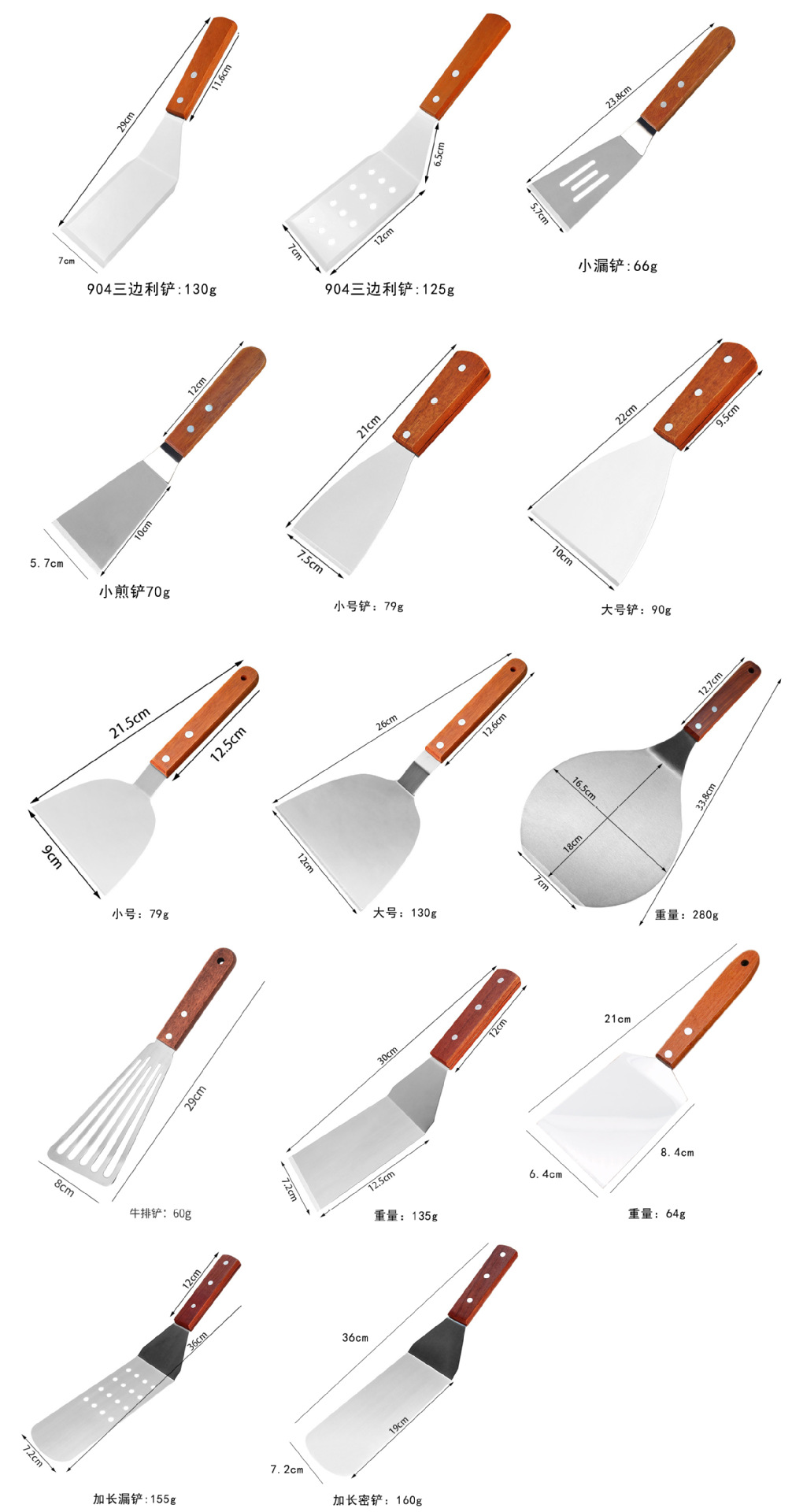 904 wooden handle three sides spatula