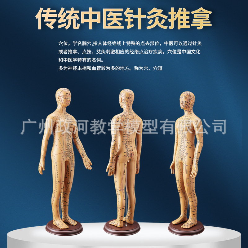 ★This model is a 60cm digital positioning women's model, made of eco-friendly PVC material, containing 14 main meridians (including Ren Mai and Du Mai) with 360 acupuncture points and 48 extra meridian points.