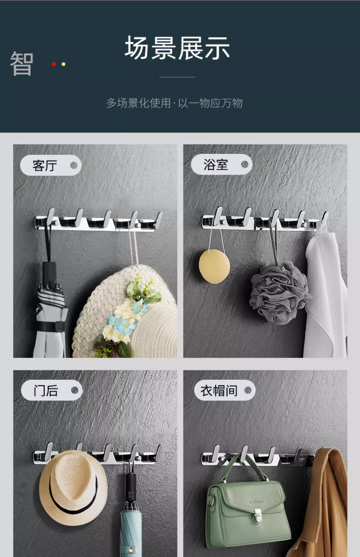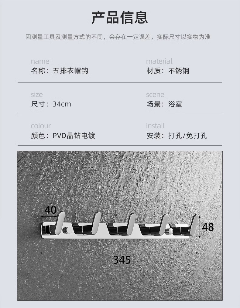 mirror silver-five row hook