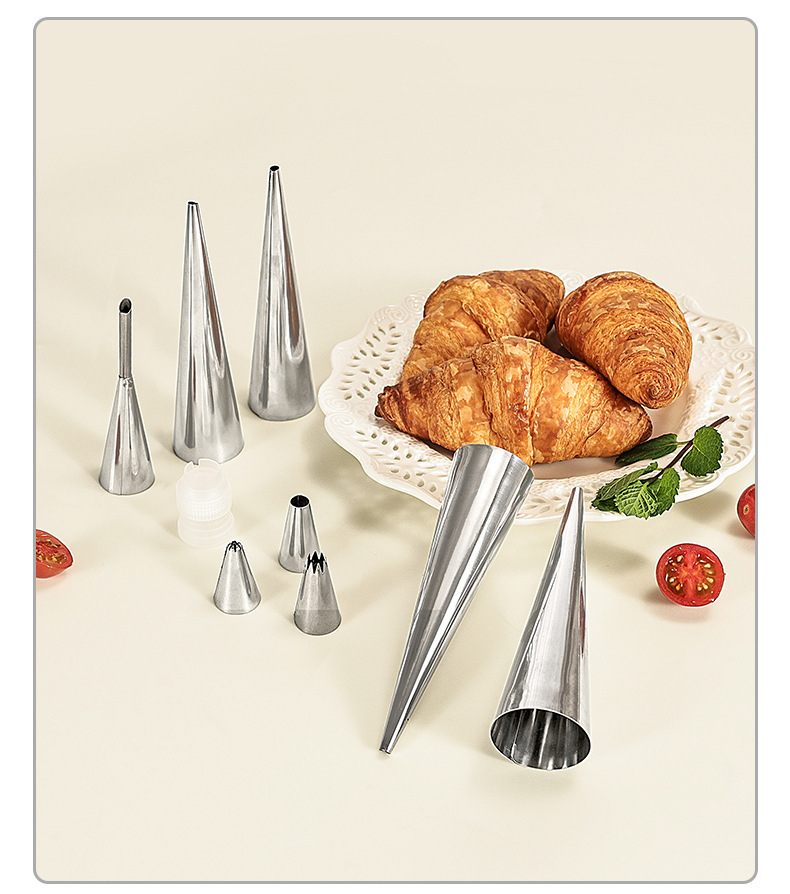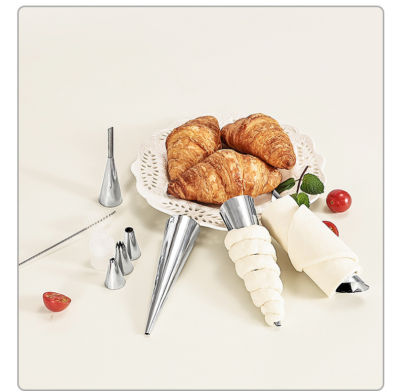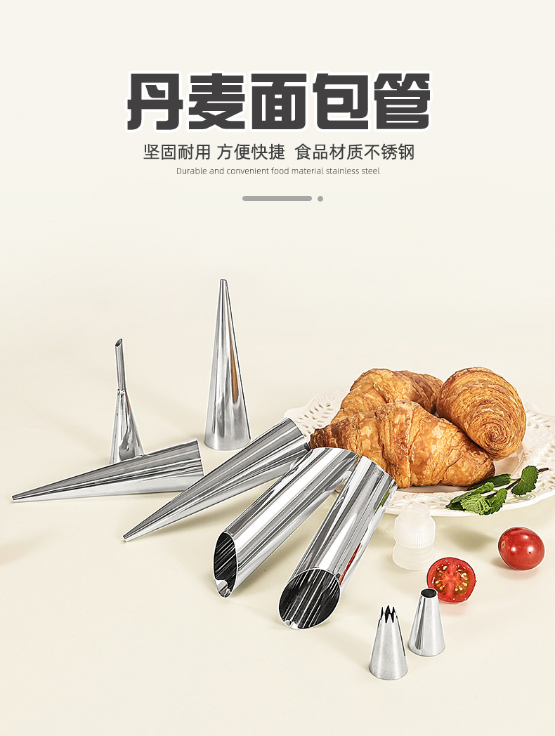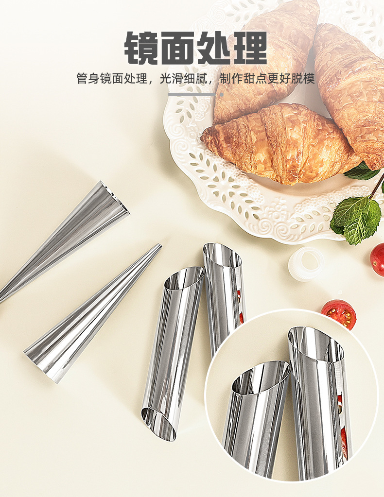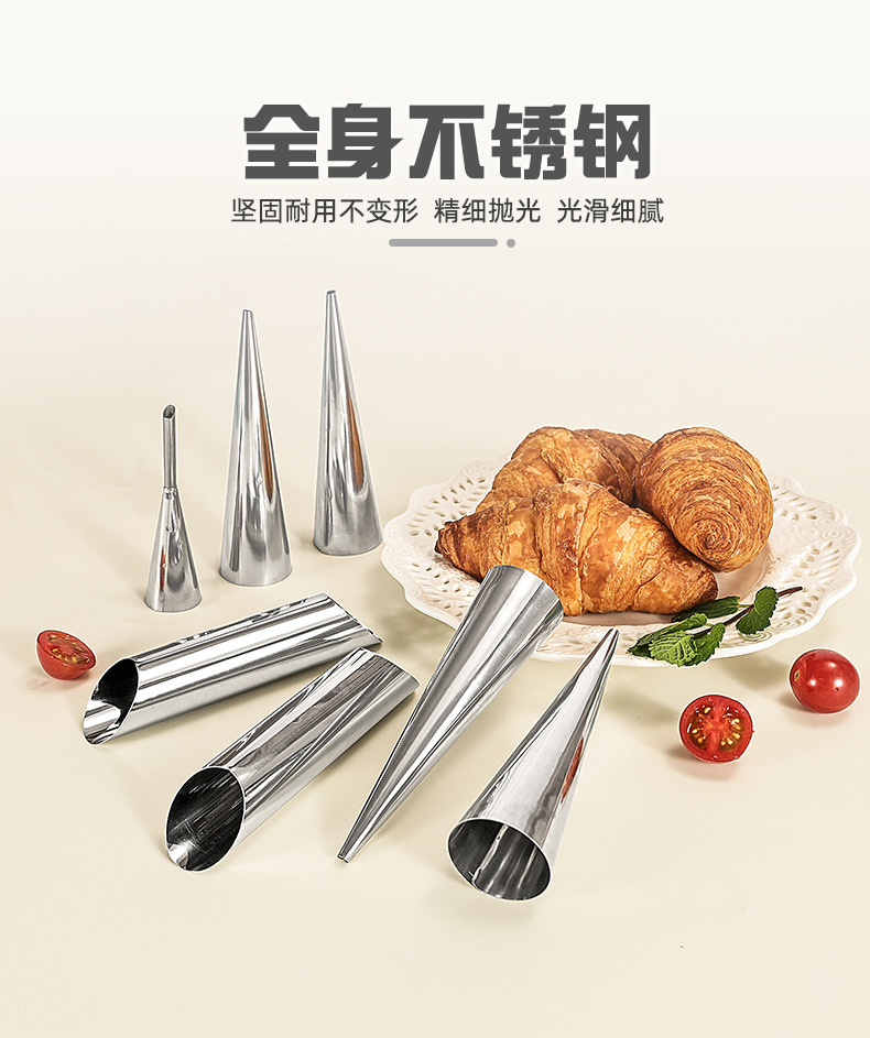 wholesale stainless steel tapered danish tube diy baking croissant mold sweet cylindrical flat mouth large screw tube clamshell packaging