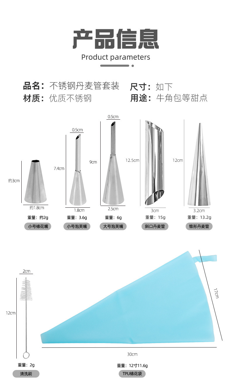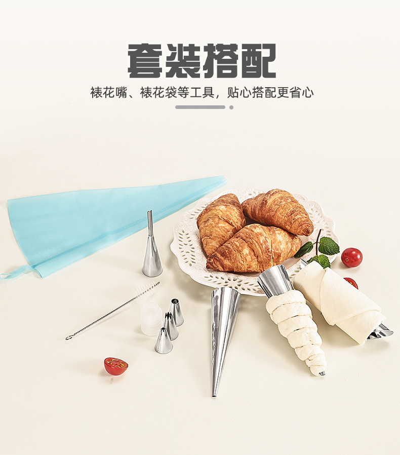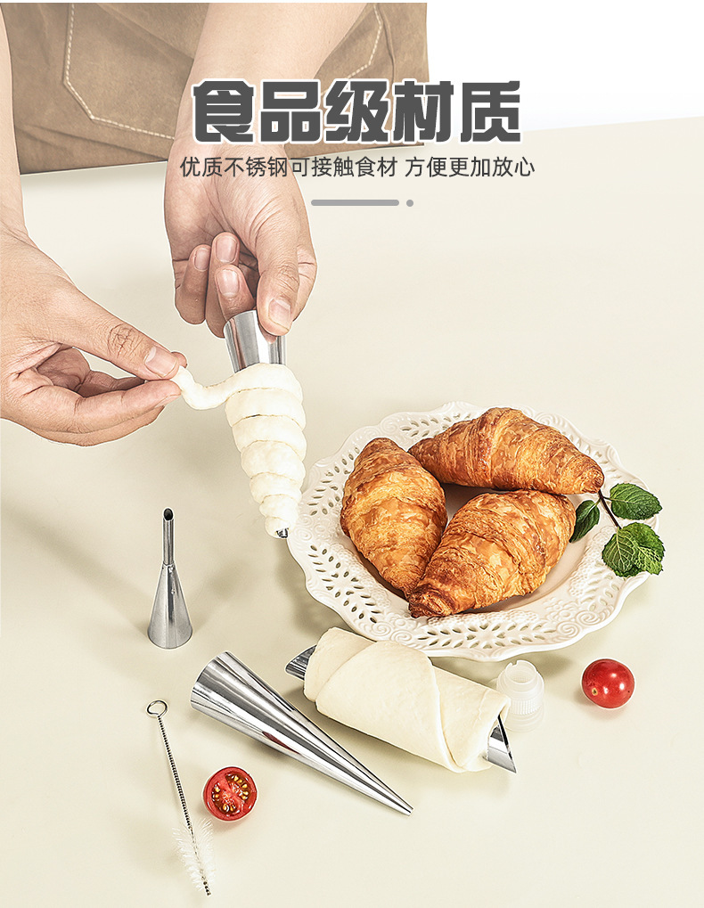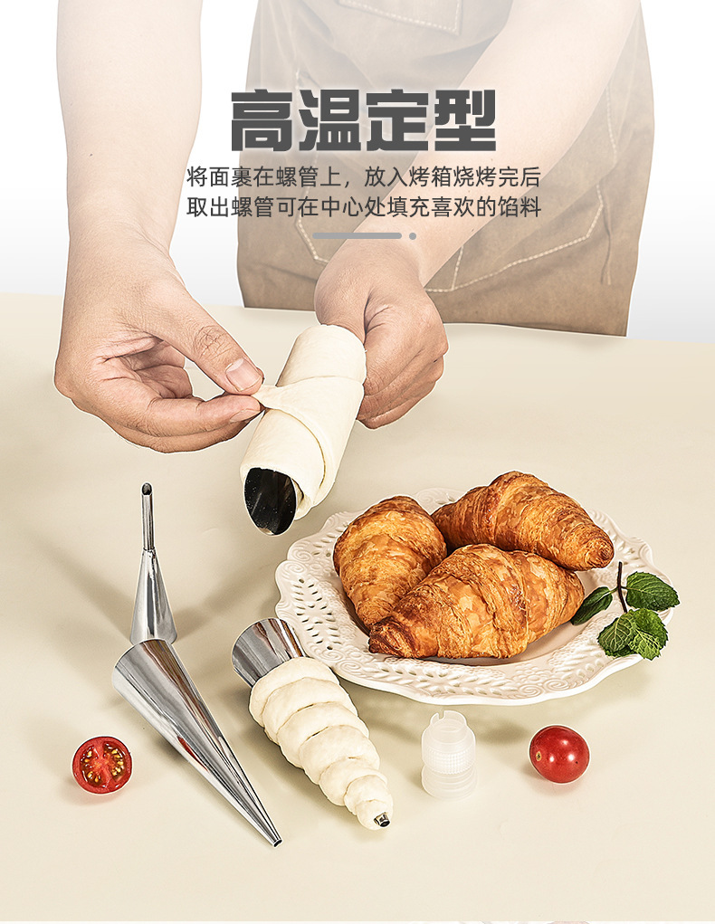 wholesale stainless steel tapered danish tube diy baking croissant mold sweet cylindrical flat mouth large screw tube clamshell packaging