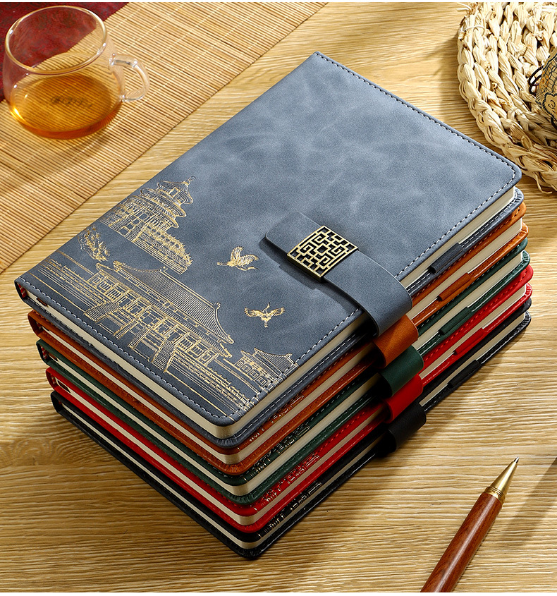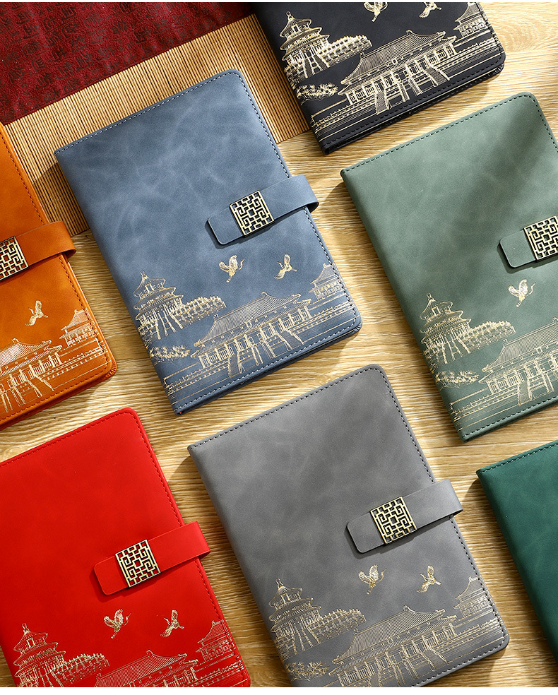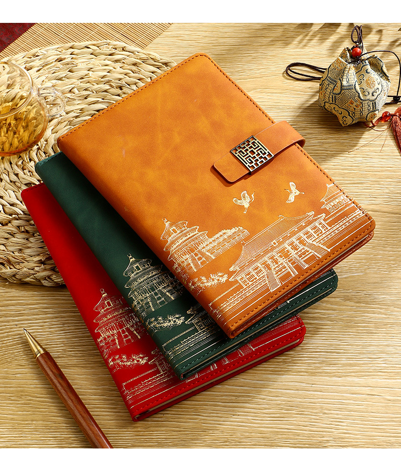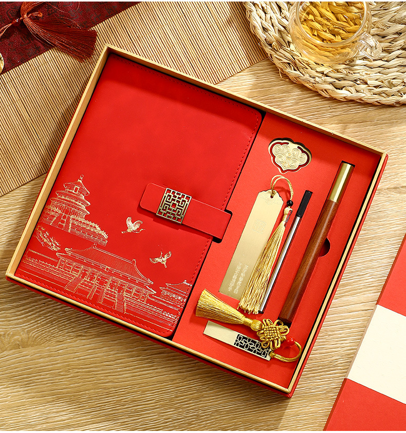 skin feeling chinese red [notebook + pen + book holder + u disk] four-piece set