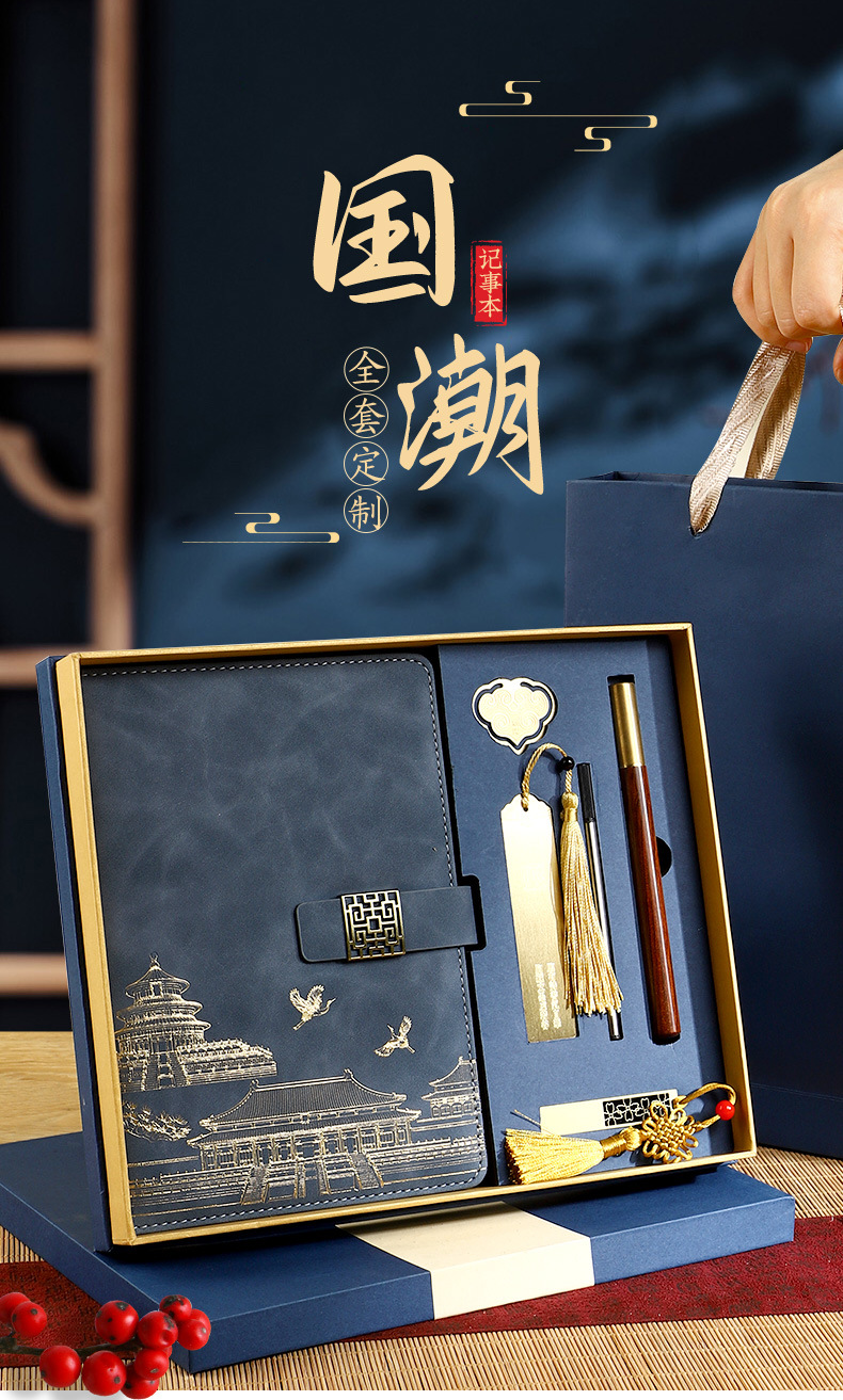 ink black [notebook + pen + book holder + u disk] four-piece set