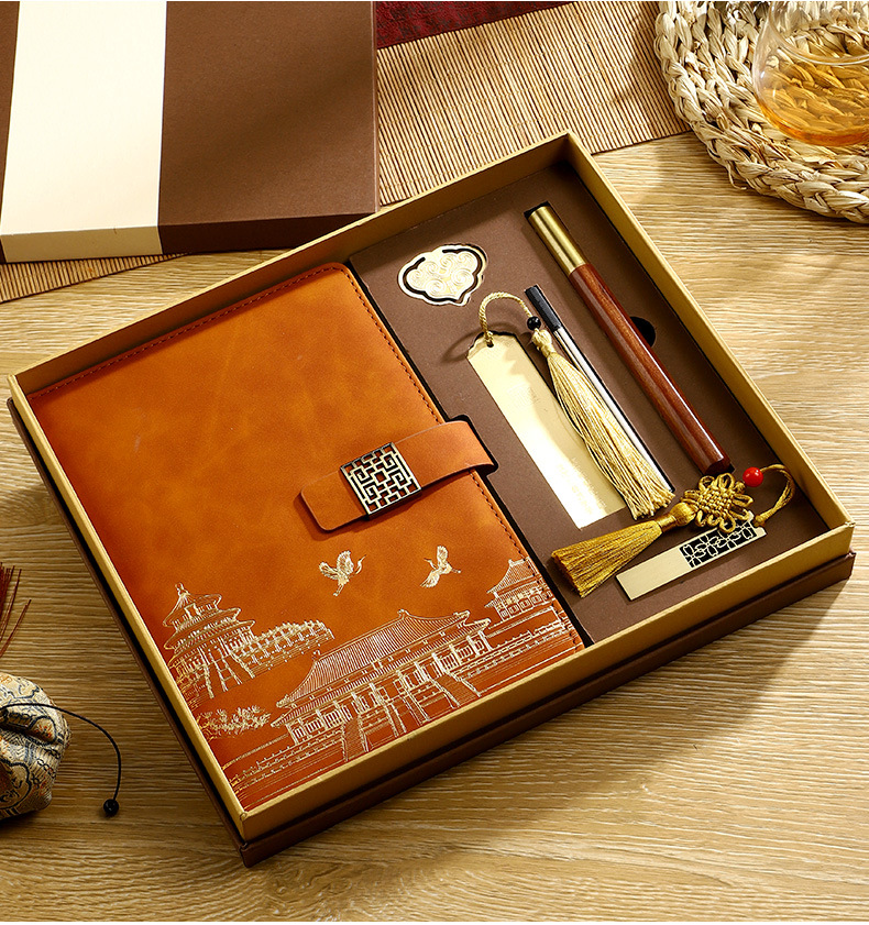 amber brown [notebook + pen + book holder + u disk] four-piece set