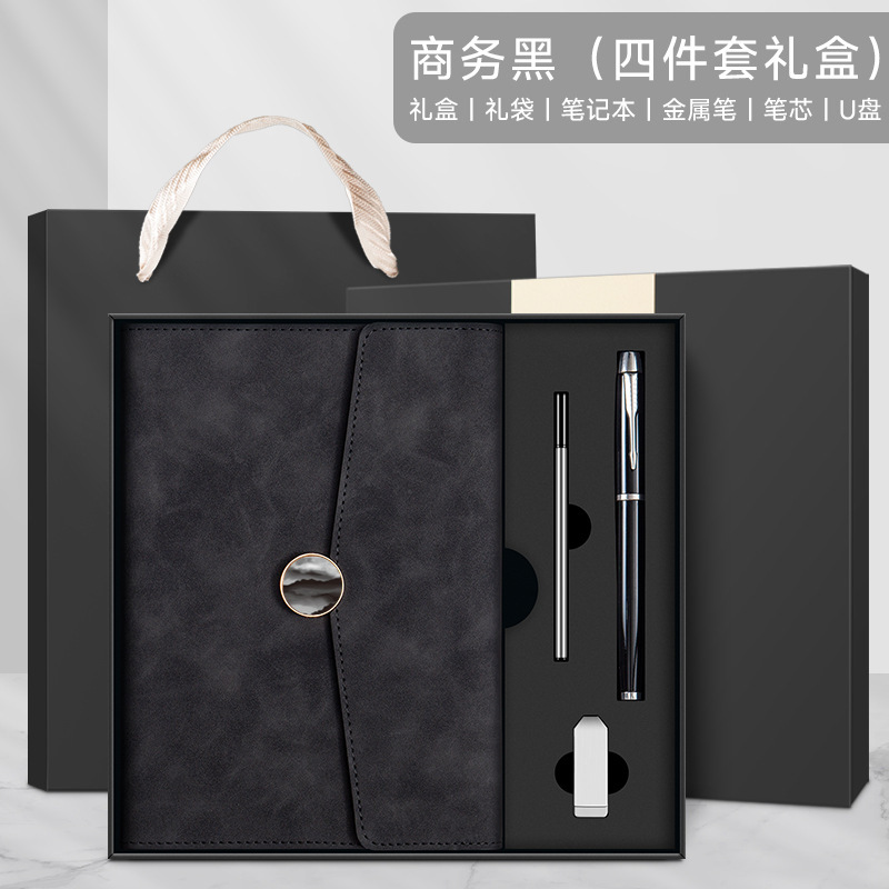 business black + pen + thermos cup + u disk + gift set