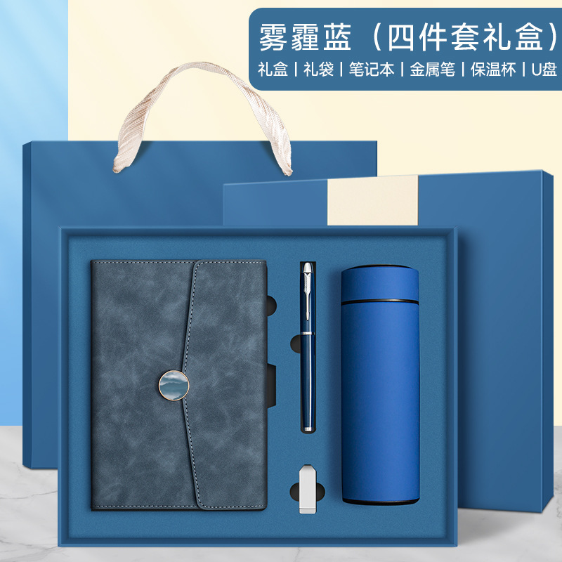 haze blue + pen + thermos cup + u disk + gift set