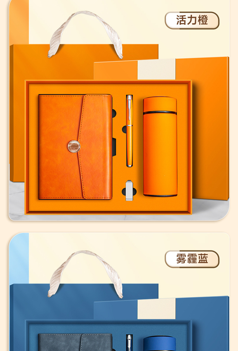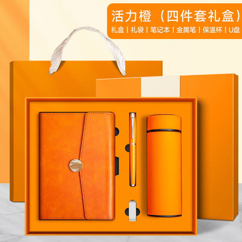 vibrant orange + pen + thermos cup + u disk + gift set