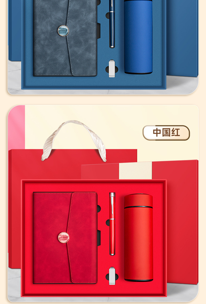 chinese red + pen + thermos cup + u disk + gift set