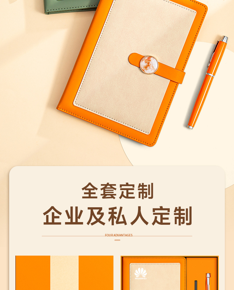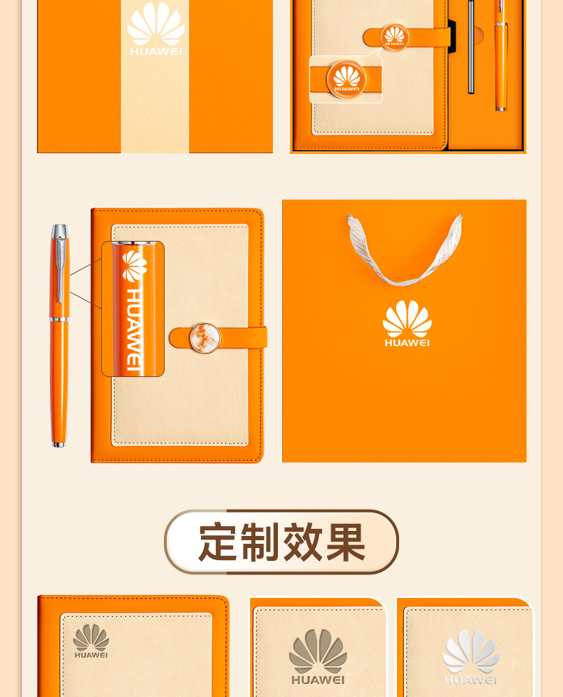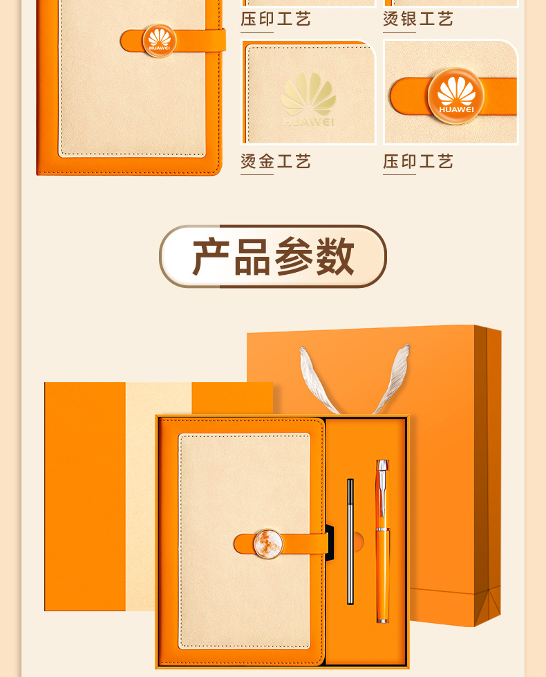 a5 vibrant orange + metal pen + u disk + high-end tri-fold gift box