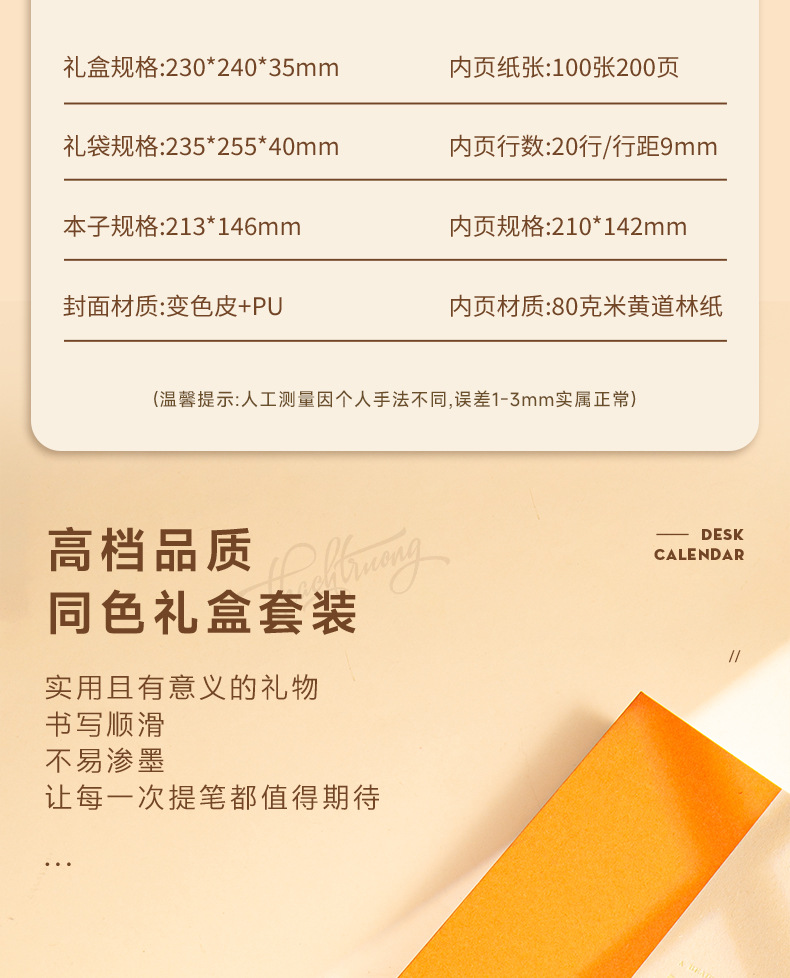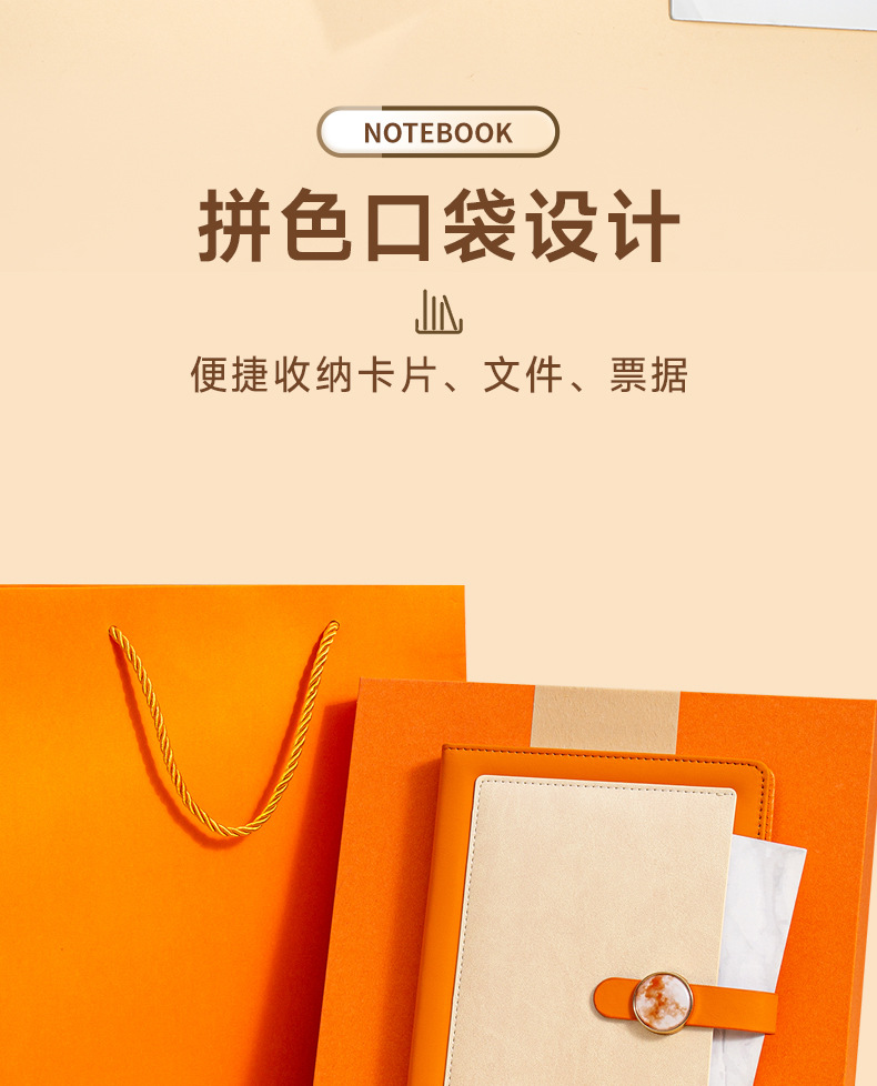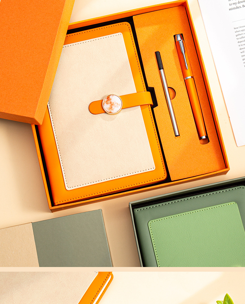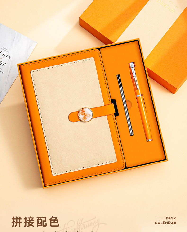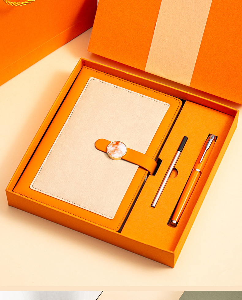 a5 vibrant orange + metal pen + high-end tri-fold gift box