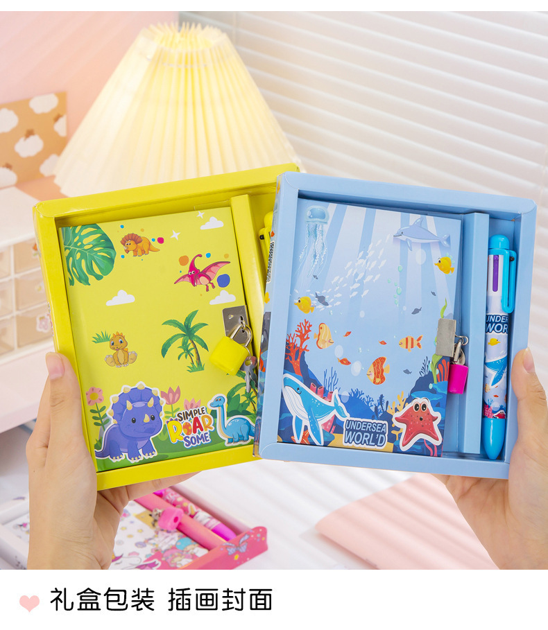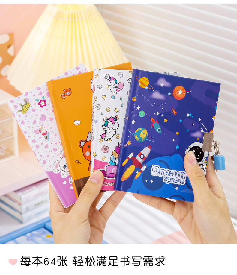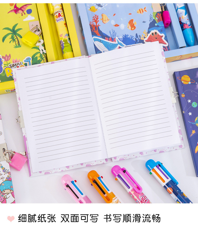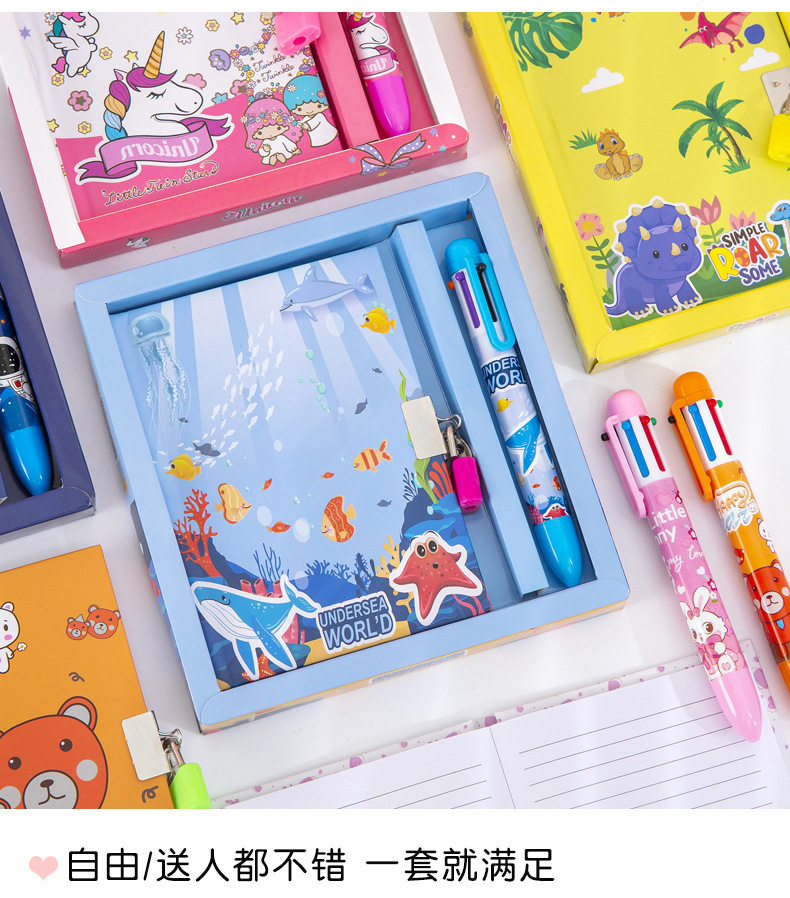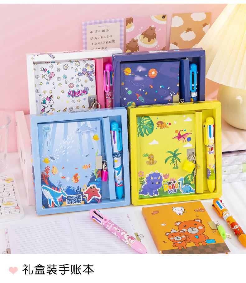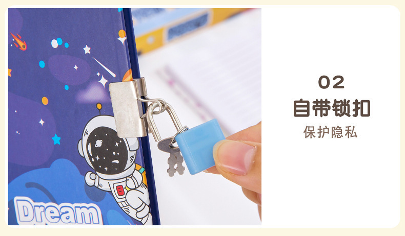 cute cartoon astronaut journal book multi-color pen gift set student gift stationery set diary with lock