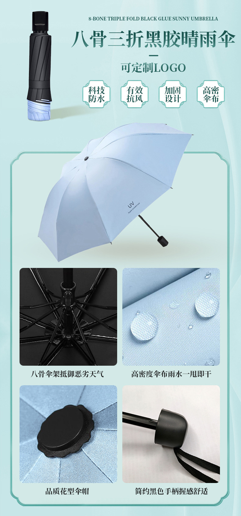 blue case + airsun cup + triple folding umbrella