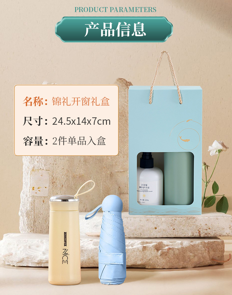blue case + thermos cup + 50% off capsule umbrella