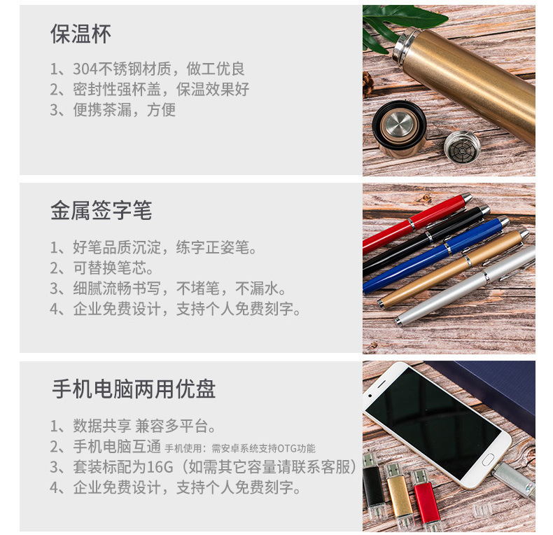 golden digital display cup + dual-purpose u disk + signature pen + notepad/four-piece set