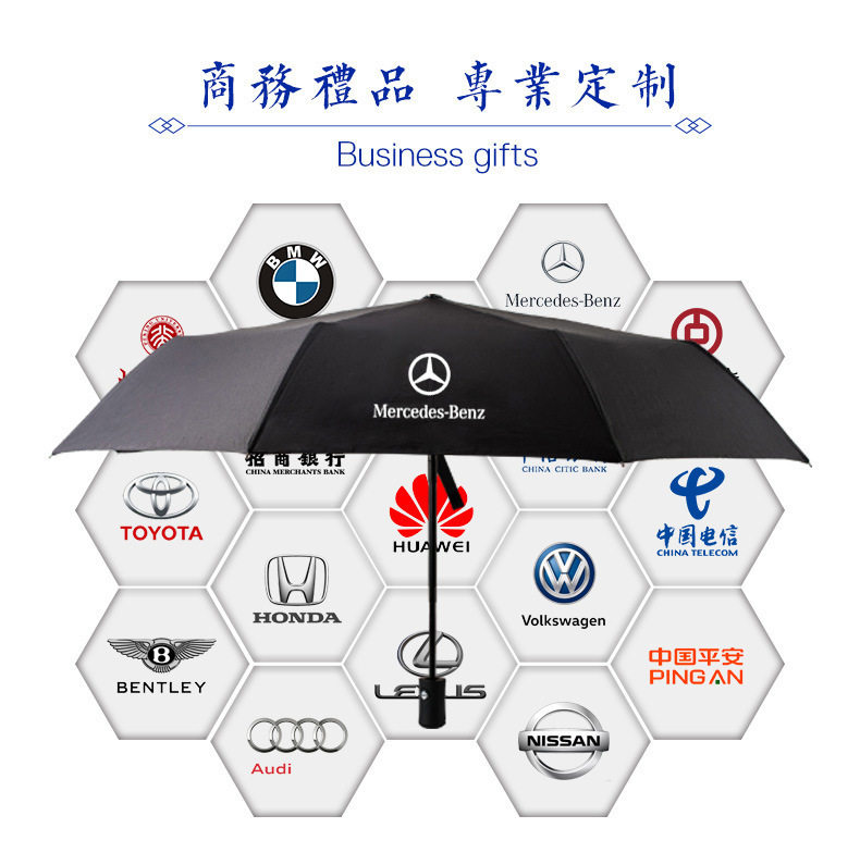 silver self-opening umbrella + signature pen + notepad/three-piece set