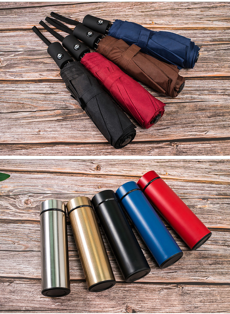 silver digital display cup + signature pen + dual-use u disk + notepad + self-opening umbrella/five-piece set