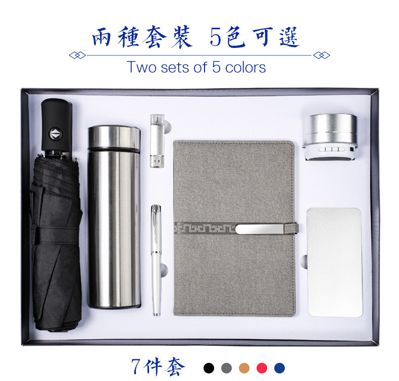 silver umbrella + digital display cup + pen + u disk + notebook + audio + power bank/seven-piece