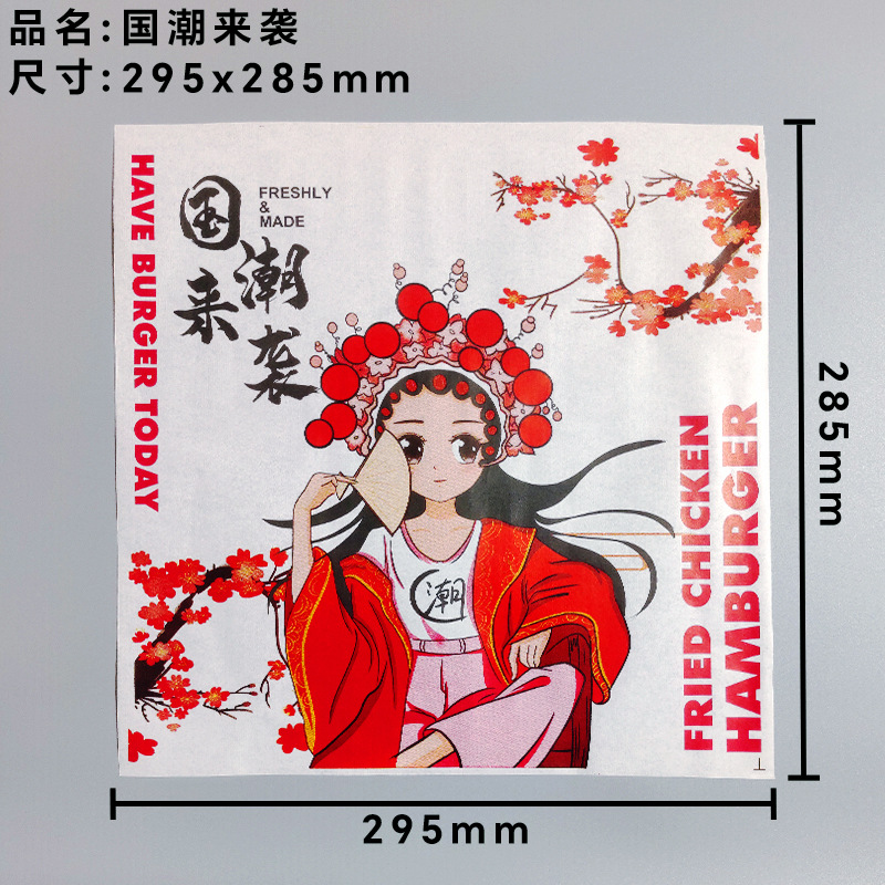 hamburger paper-100 pieces of national tide coming; oil-proof thickened type; paper