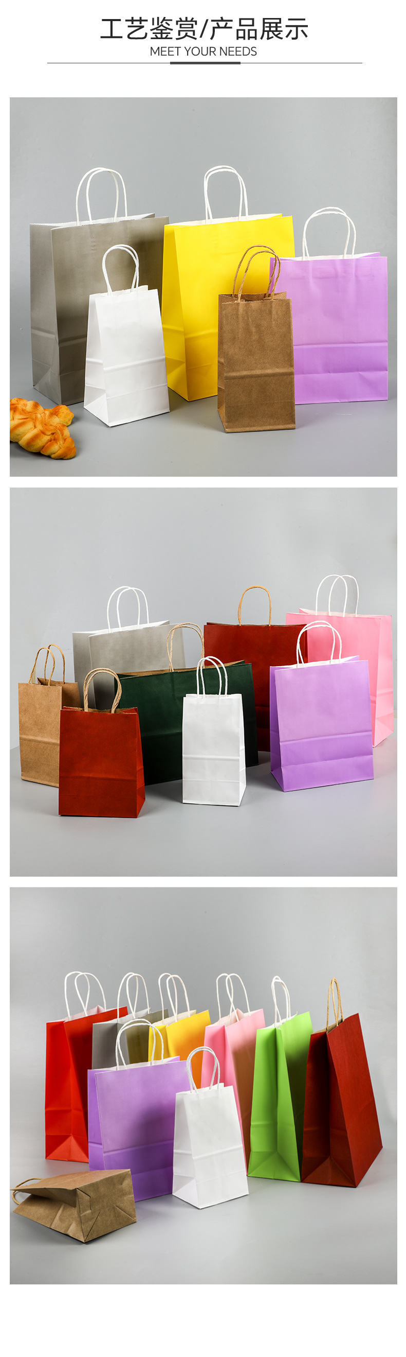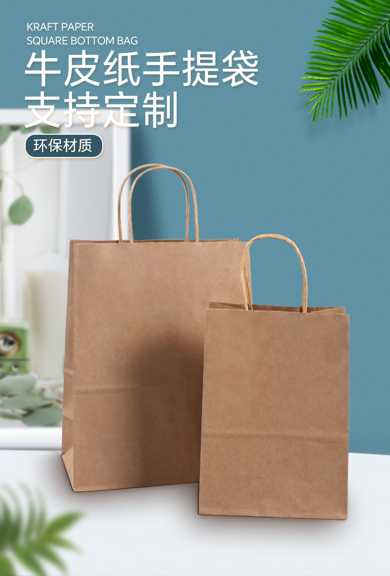 kraft paper bag-coconut tree thickened-50 pieces; 21*27 * 11cm; kraft paper