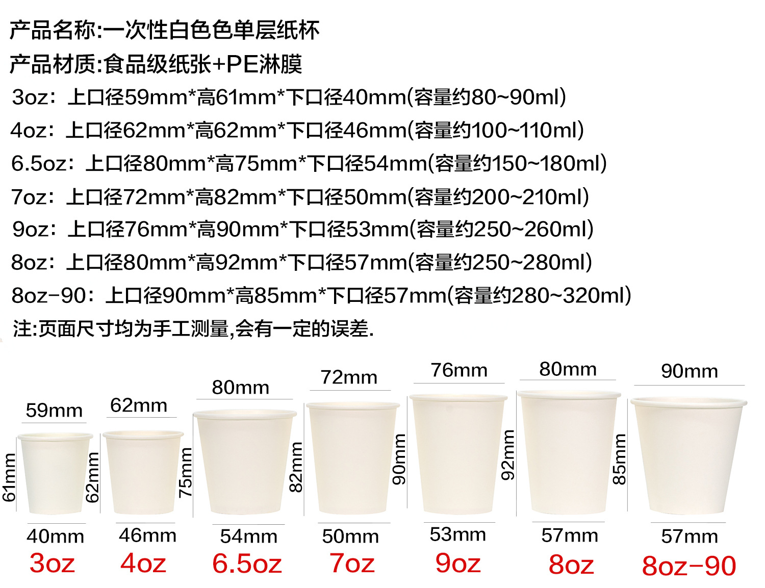4oz single layer and white paper cup (about 100ml); as shown in the figure