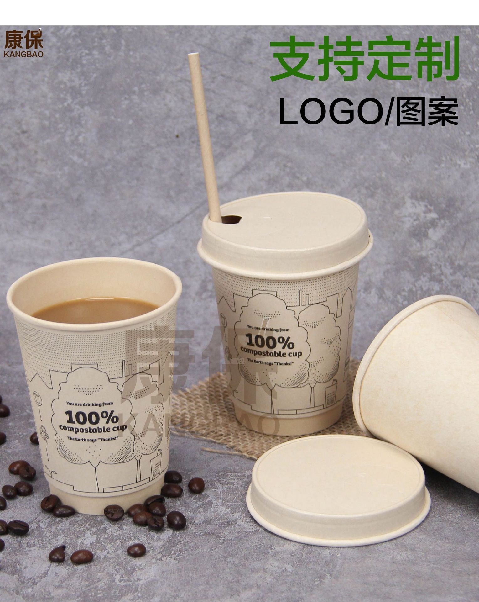 12oz bamboo pulp 2-layer paper cup (about 400ml); as shown in the figure
