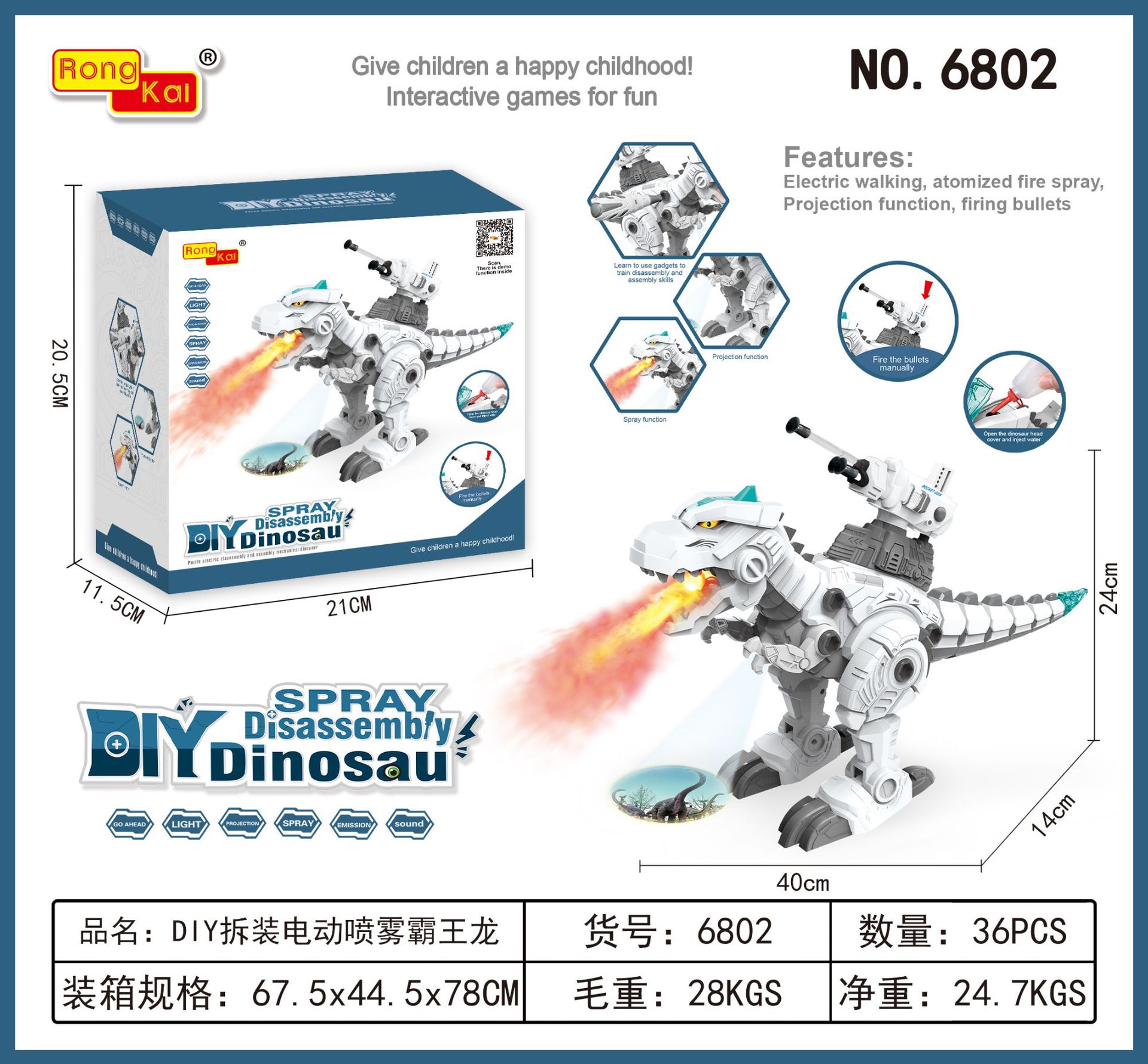 [6802] diy disassembly electric spray tyrannosaurus rex-without battery