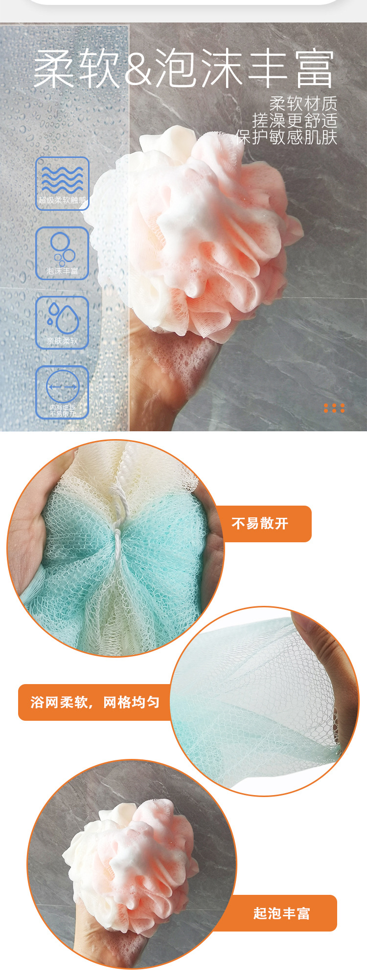 factory direct sales bathroom appliances mesh sponge plus-sized loofah 50g shower net ball solid color flexible elastic foaming artifact