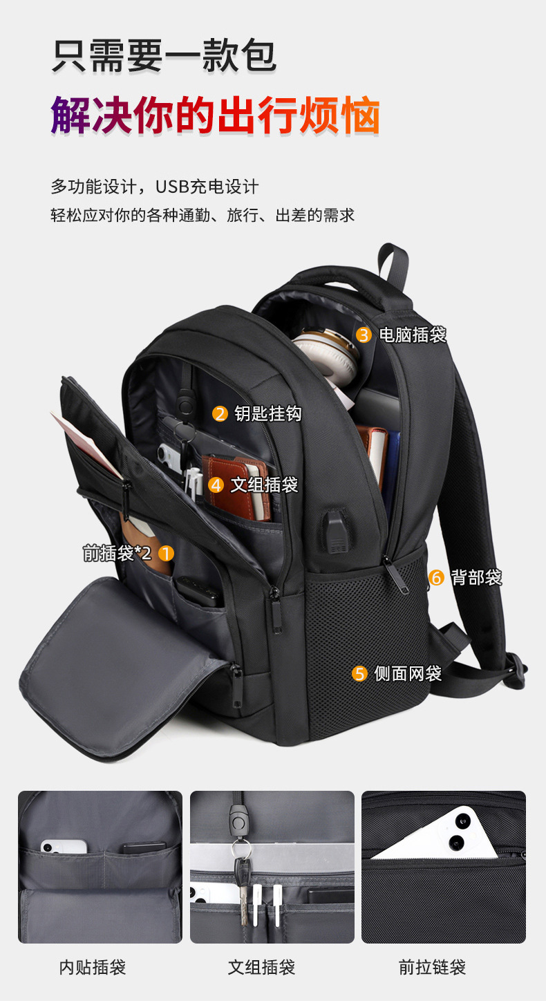 backpack nylon 1680d men's thickened black double-shoulder backpack large capacity cross-border new arrival backpack computer bag