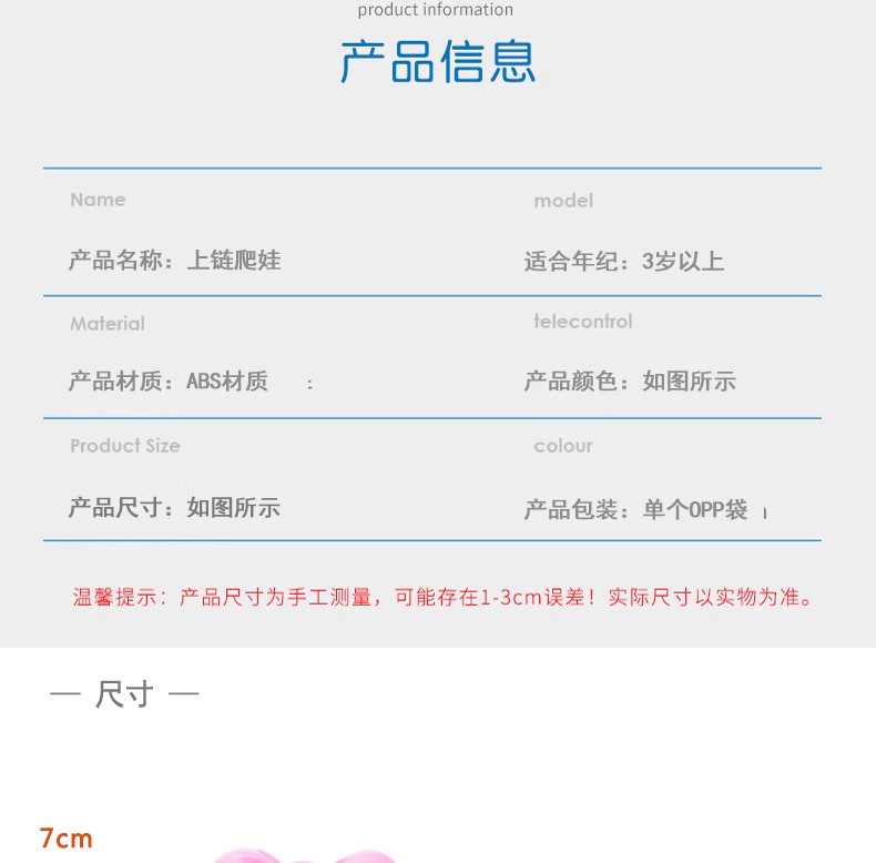 Note: After winding the spring, the doll will crawl forward, very cute, with its butt wiggling.