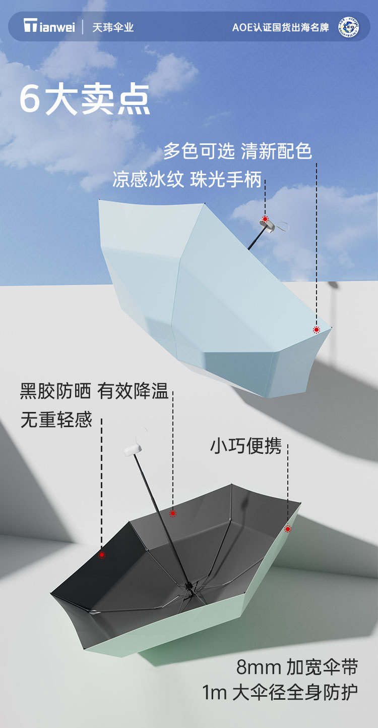 [five-fold six-bone thickening] sky blue-with umbrella cover