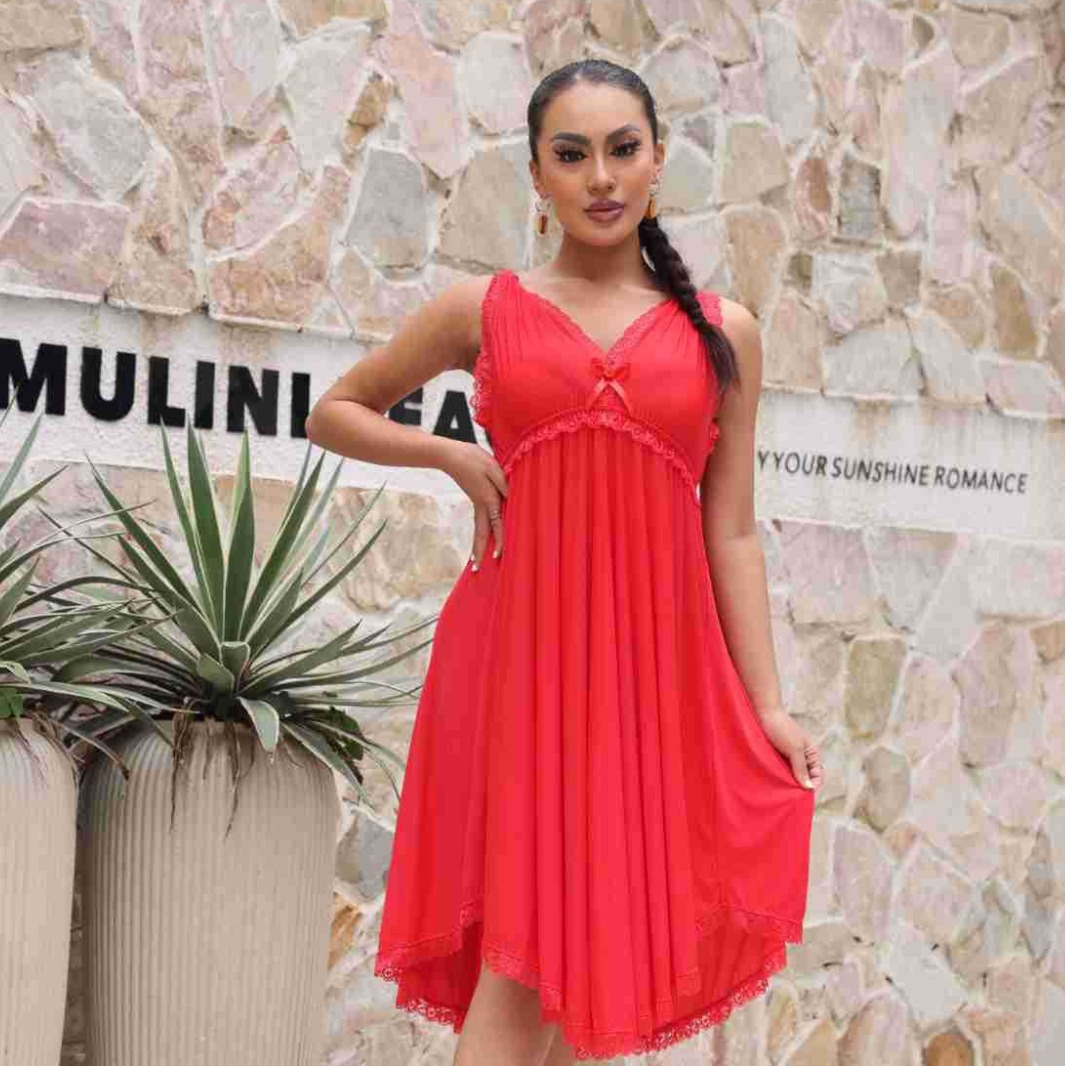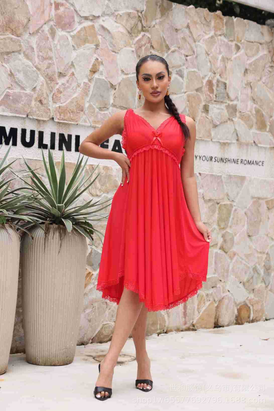 spring and summer new women's pajamas foreign trade women's large size modal stretch long lace nightdress