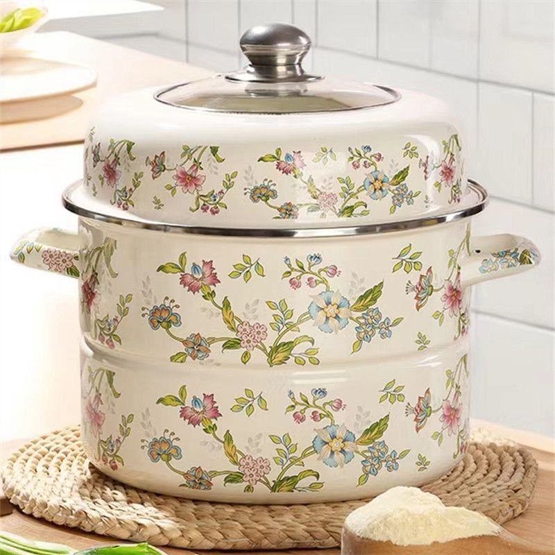 28cm early summer enamel double-layer steamer (underglaze color)